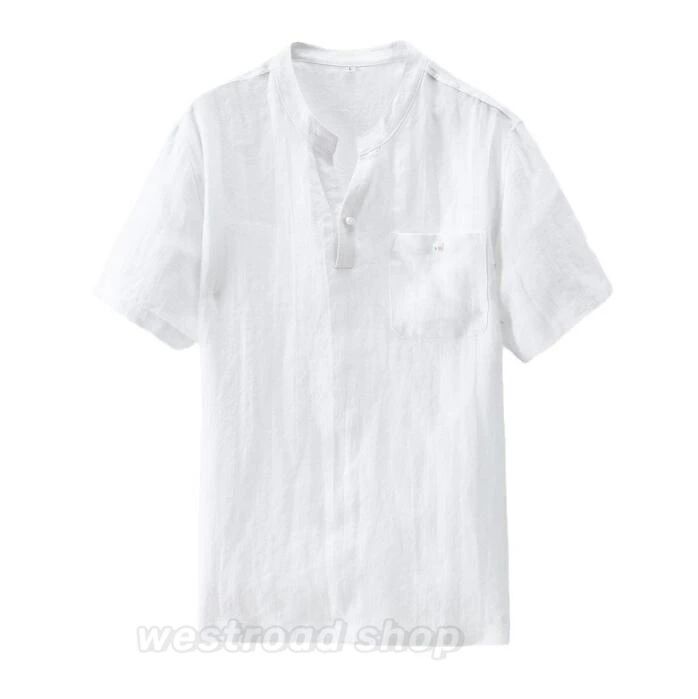 スタンドカラー プルオーバー tシャツ リネン 麻シャツ メンズ 夏服 半袖tシャツ サマーシャツ アウター トップス 薄手 涼しい 通勤 部屋着