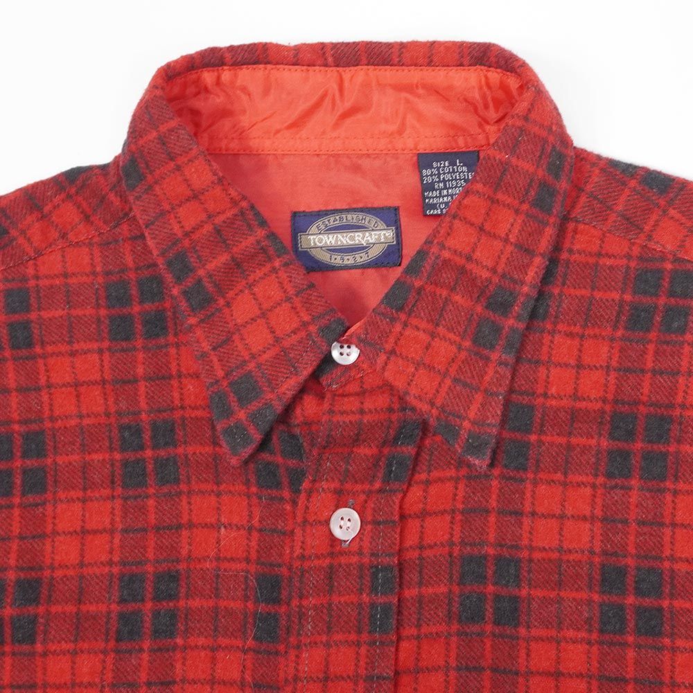 タウンクラフト TOWNCRAFT 90s 90年代 プリントネルシャツ 旧タグ JCペニー USA アメリカ ヴィンテージ 古着 メンズ シャツ レッド ブラック チェック柄 L【中古】