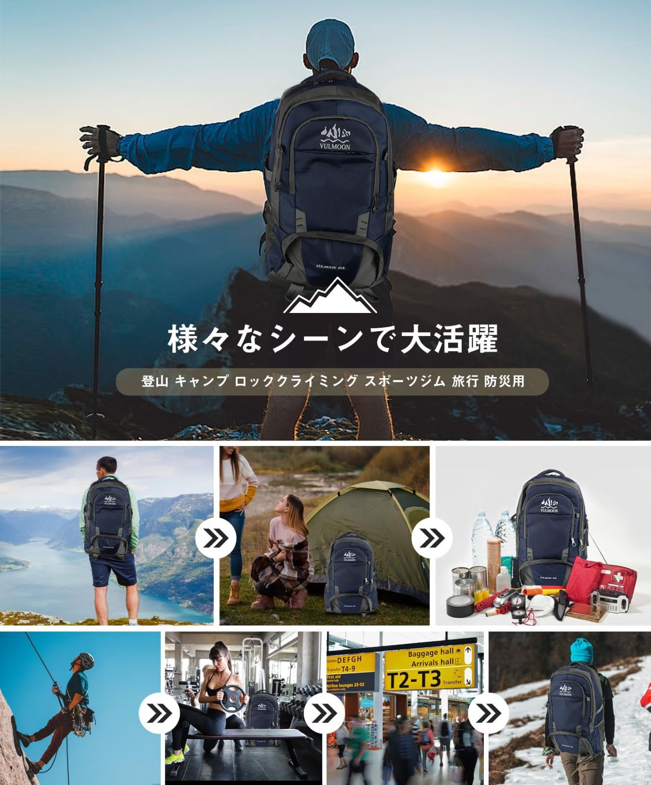 【人気商品】60L メンズ 登山 カジュアル バックパック 防水 大容量 軽量 防災リュック アウトドア リュックサック リュック おしゃれ 出張 通勤 海外 [Vulmoon] 旅行 キャンプ用品 スポーツジム