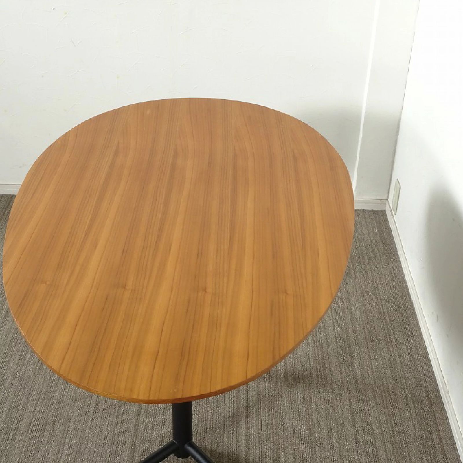 たまご型の天板と脚の形が中央にあることで、色々な方向からテーブルを囲みやすくなっています。