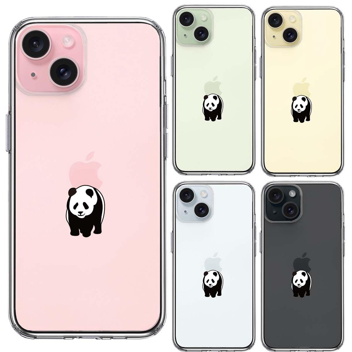 iPhone15Plus ケース クリア パンダ りんご おんぶ スマホケース 側面ソフト 背面ハード ハイブリッド