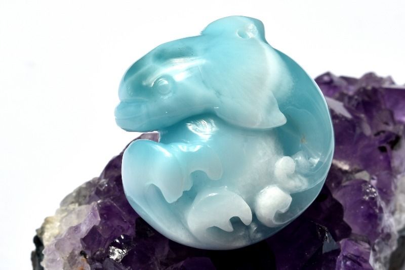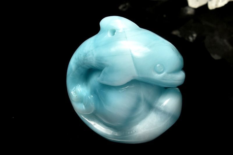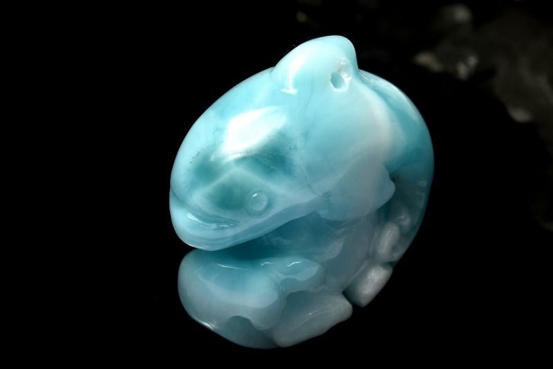 【1点物】縁起物◇癒やしの石 ラリマー 25x24mm イルカ彫刻 置物 パワーストーン 天然石 _PC7611