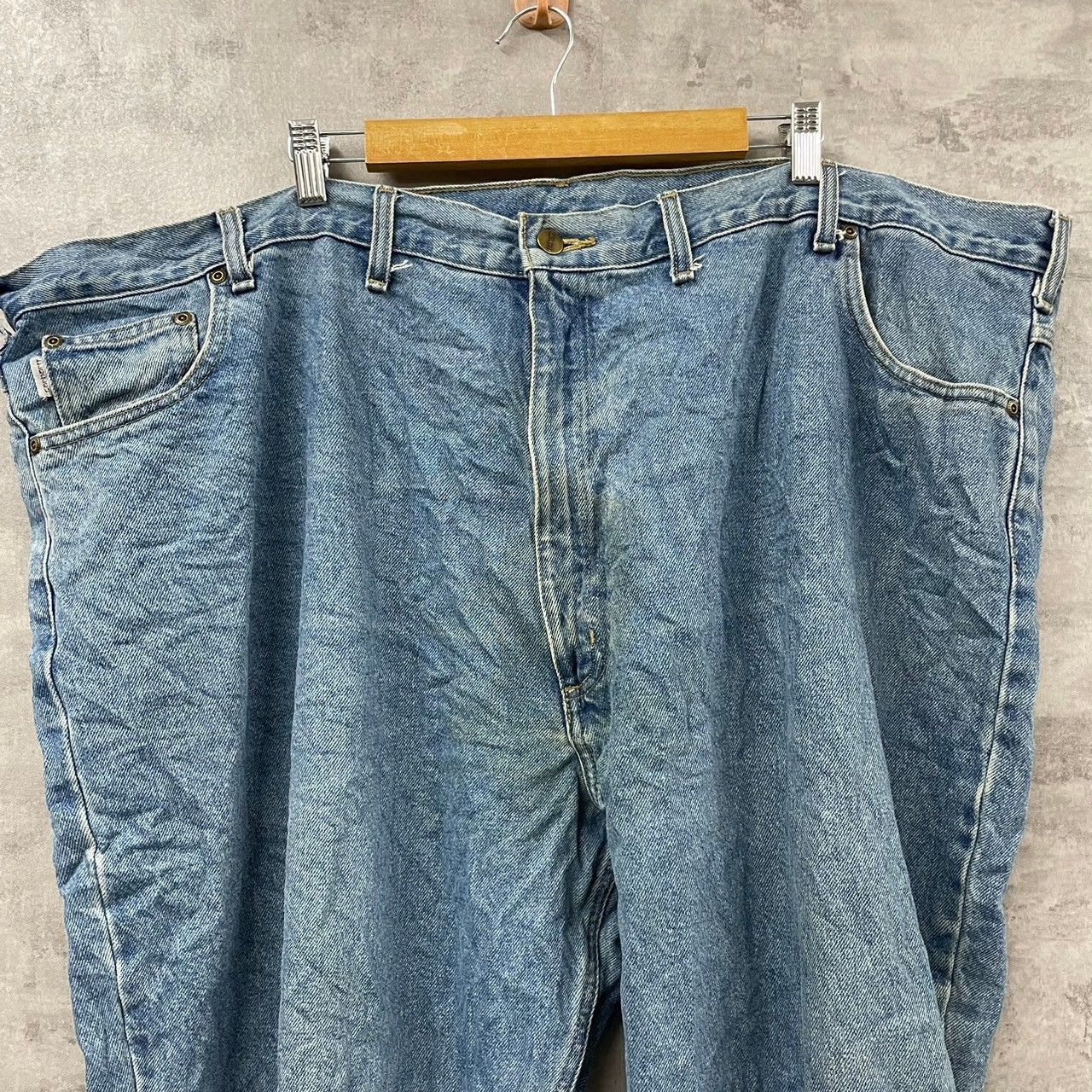Carhartt デニムジーンズパンツ ライトブルー 52×30 実寸W52in ジップフライ リラックスフィット 大きいサイズ カーハート B17STW 古着 SK11090