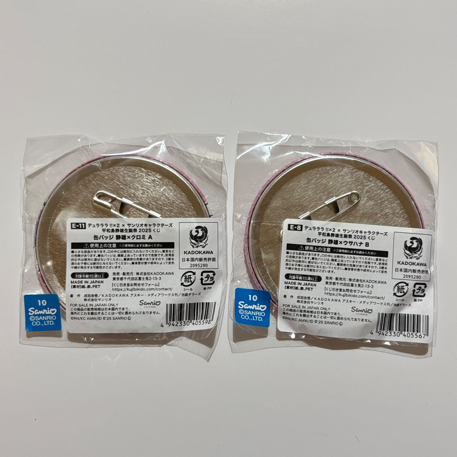 デュラララ 平和島静雄生誕祭2025 E賞缶バッジ くじ引き堂 サンリオ クロミ ウサハナ 【2点セット】