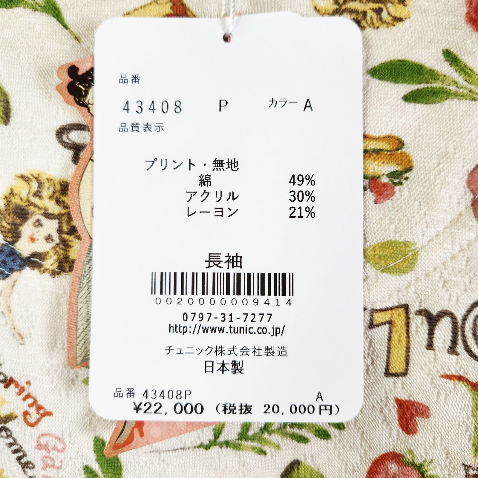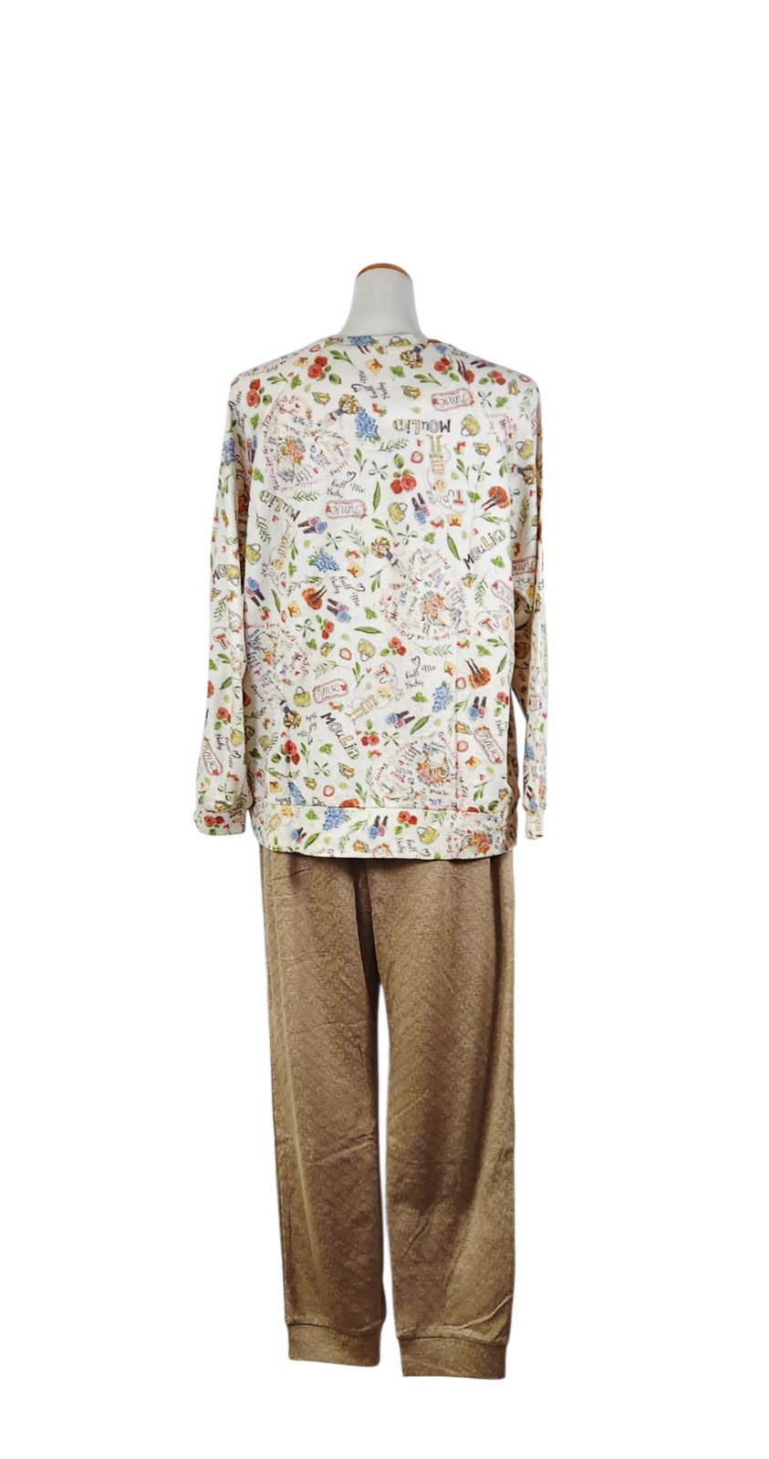 鴨居羊子パジャマ 新品未使用‼️TUNIC 秋物長袖 トレーナーパジャマ アーモンド接結リーフキャラ 43408 日本製 ベージュ色