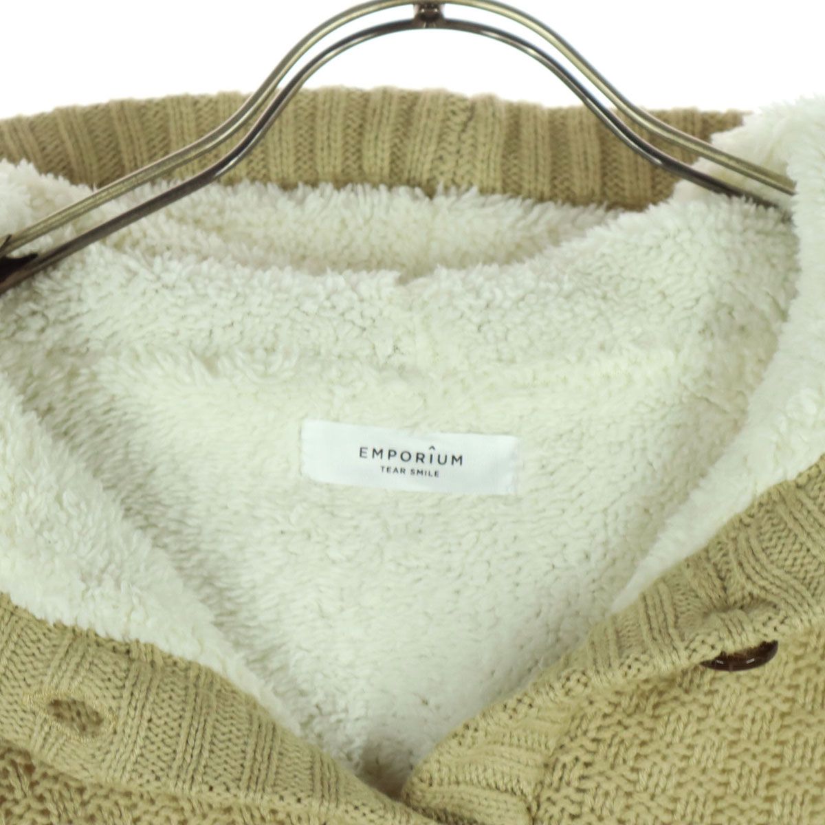 美品 EMPORIUM TEAR SMILE エンポリアムティアスマイル 裏ボア 長袖 裏ボア フード付き ニットジャケット L ブラウン系 レディース