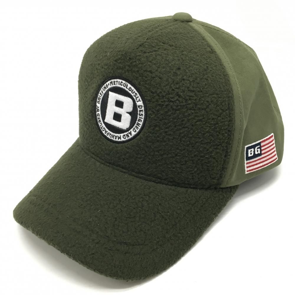 【美品】ブリーフィング キャップ ダークグリーン系 一部ボア ロゴ刺しゅう FREE ゴルフウェア BRIEFING