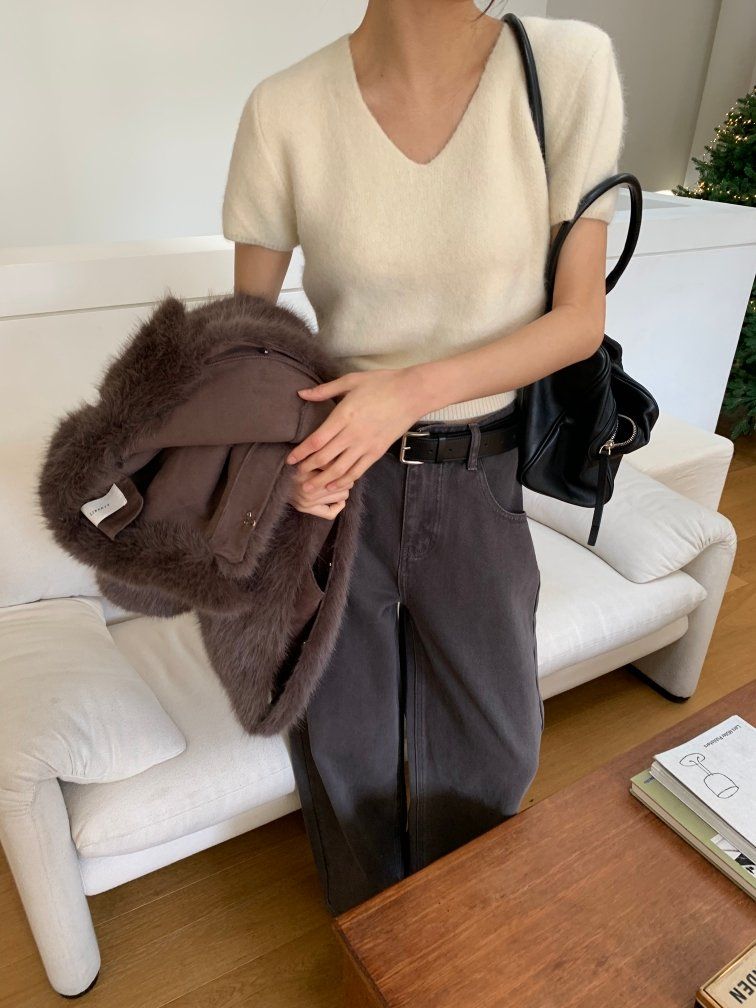 ラビット 半袖ニット (ふわふわ 冬 アンゴラ デイリー 冬 年末ルック ゲストルック 人気)