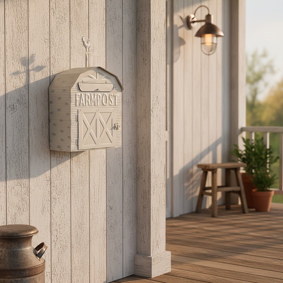 【農家風ヴィンテージ】メタルメールボックス ドロップシュート付き 郵便ポスト 壁掛け/据え置き 玄関 郵便受け おしゃれなライトブラウン/乳白色 鉄製 丈夫な収納ボックス 屋内/屋外 ホームデコレーション【ライトブラウン】