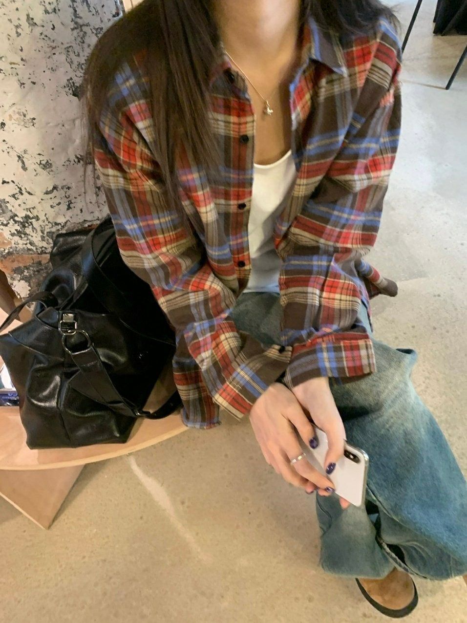チェックシャツ 春新作 チェックシャツ アウター (ニジ NB)