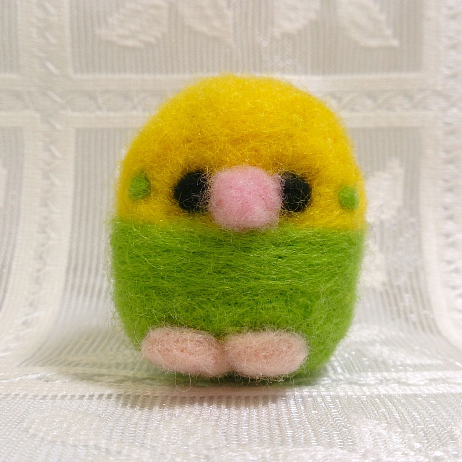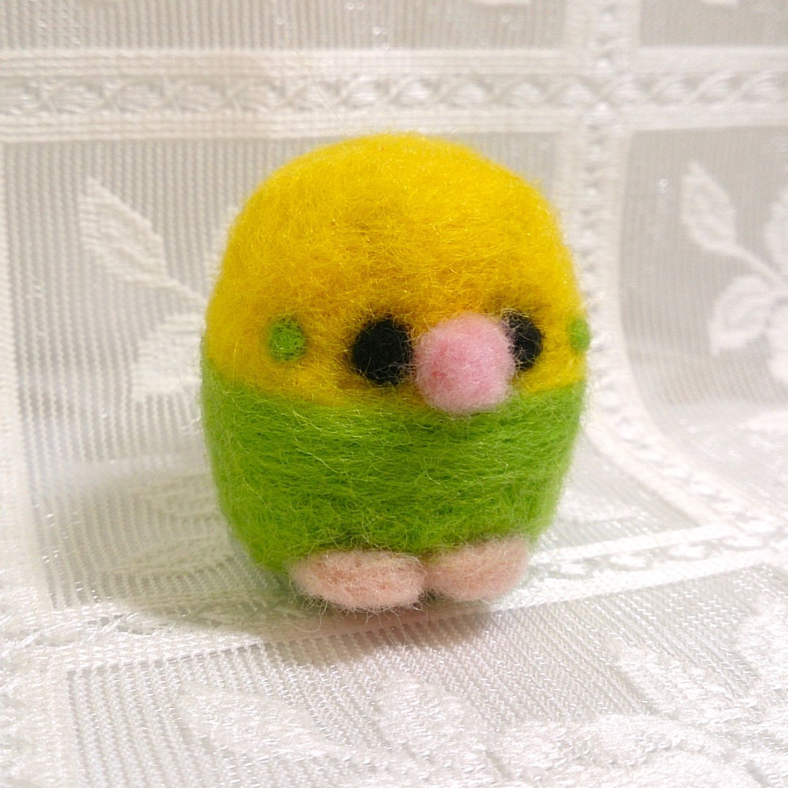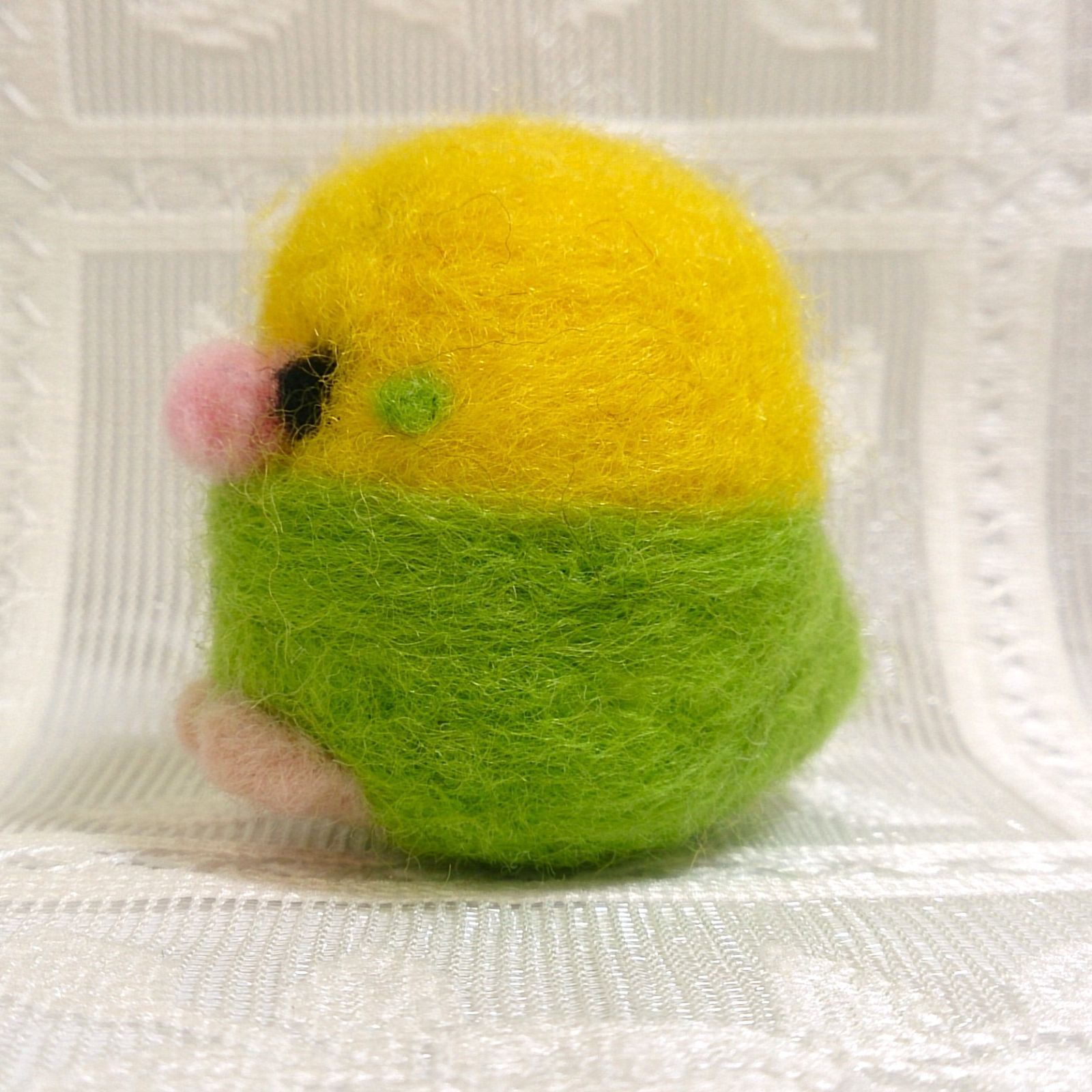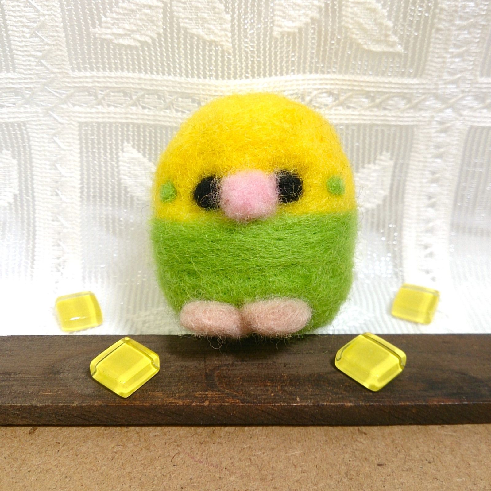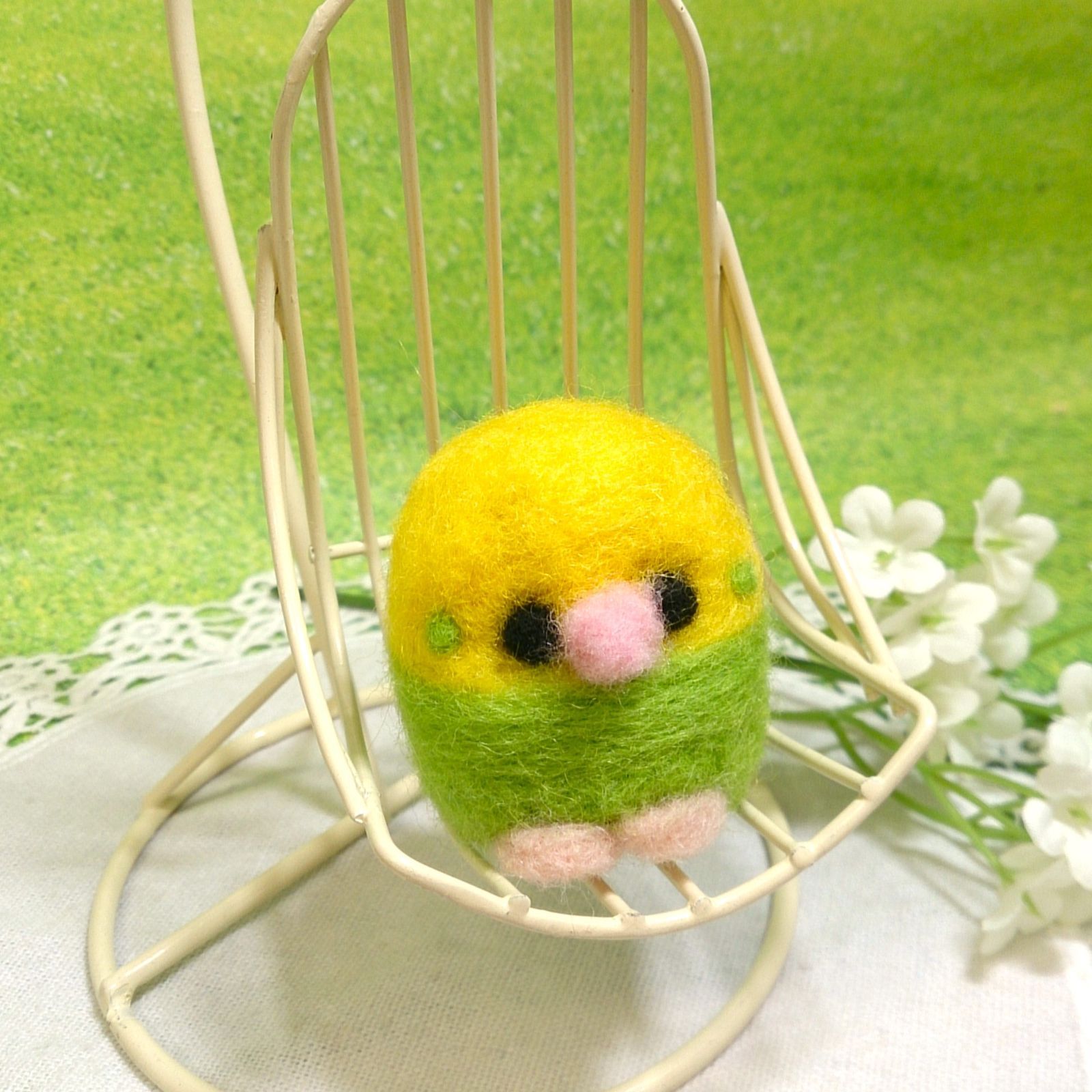 羊毛フェルト◇ハンドメイド ころころインコ 鳥ちゃん 置物 インテリア ピンク・グリーン・イエロー oh-02298