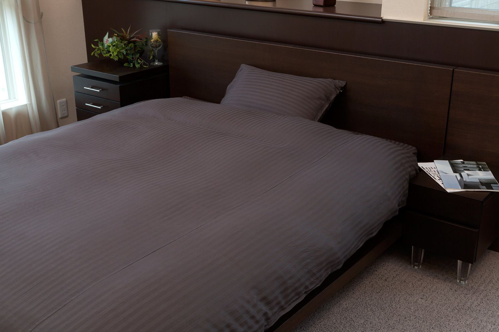 【人気商品】Mサイズ ピロケース チャコールグレイ レジーナ サテンストライプカバー HS11050-139 ホテルスタイル