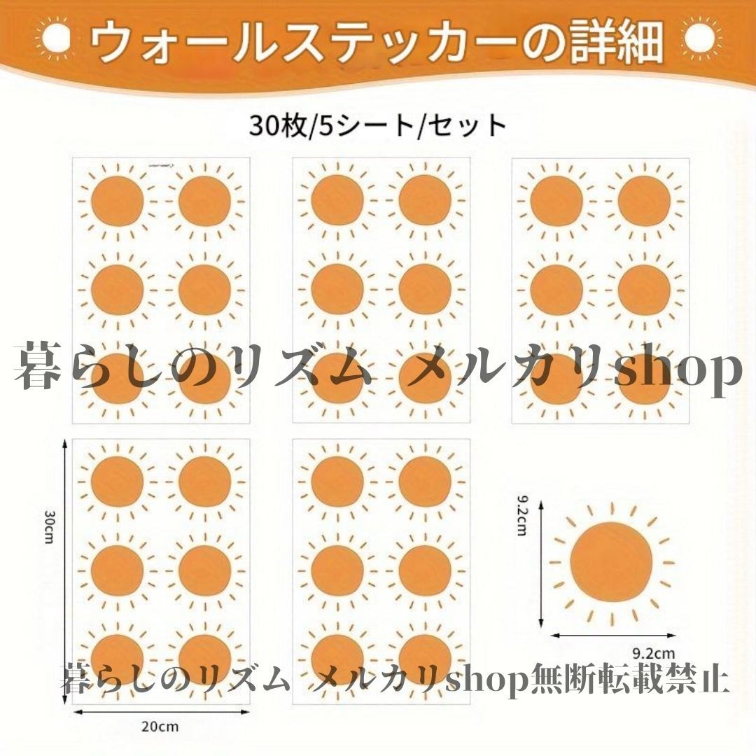 ウォールステッカー 5シートセット 30個セット ボヘミアン サンシャインウォールステッカー 取り外し可能 サンシャインウォールステッカー ビニールサンドット壁画 ベッドルーム リビングルーム 取り外し可能 サンシャインウォールデコ 自己粘着式