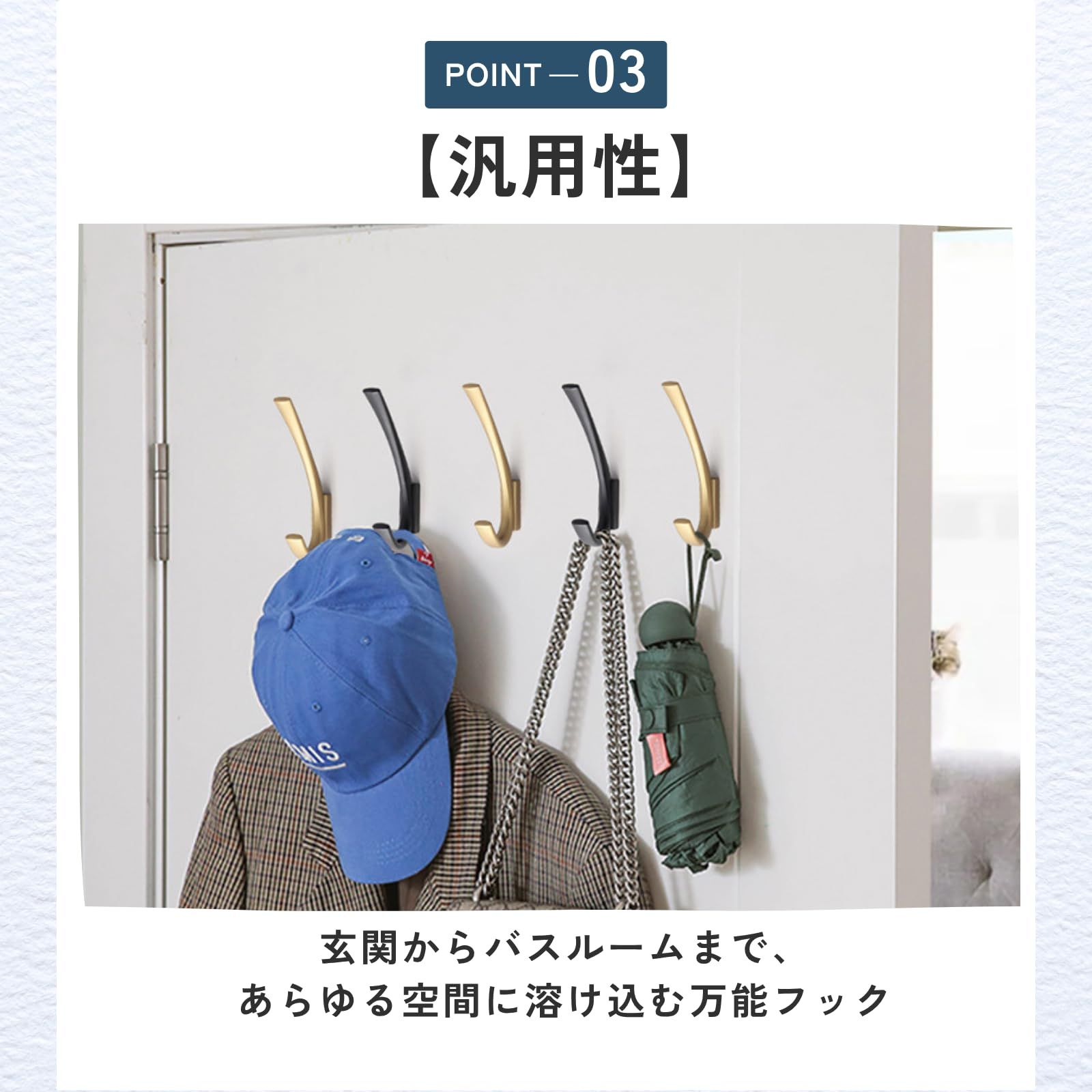 ideamall 壁掛けフック おしゃれ バッグハンガー ゴールド 6個セット
