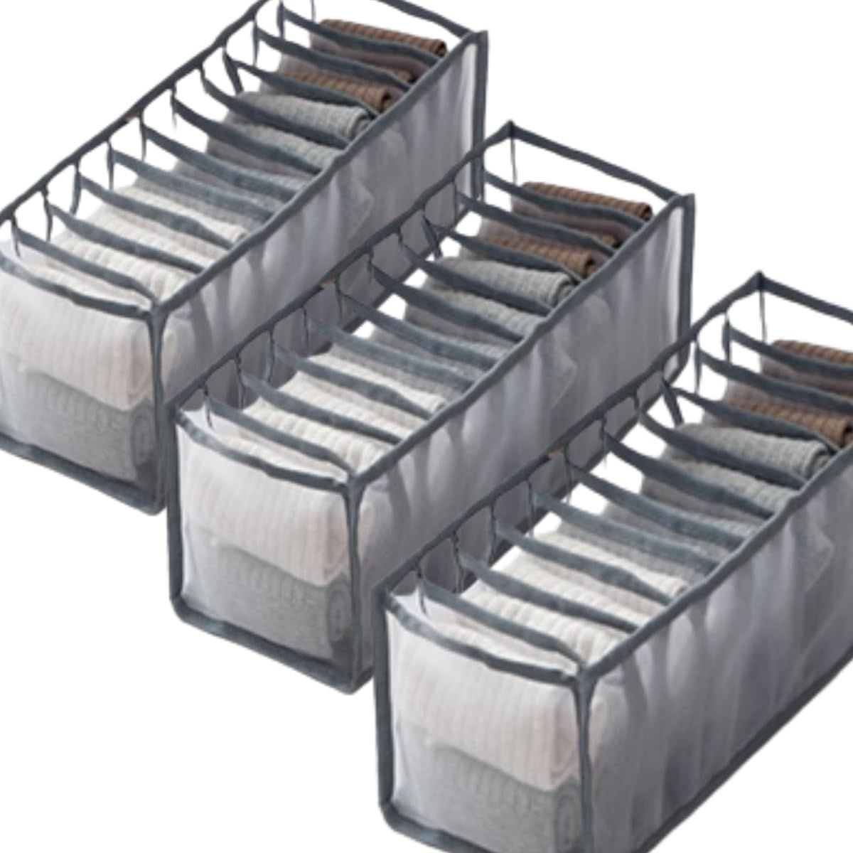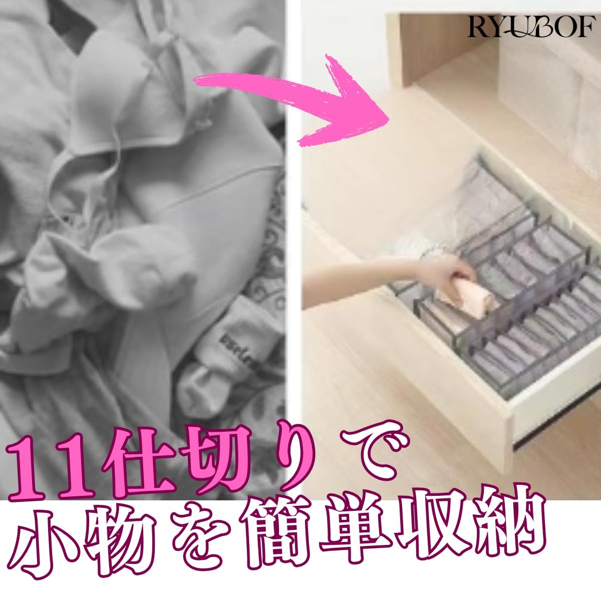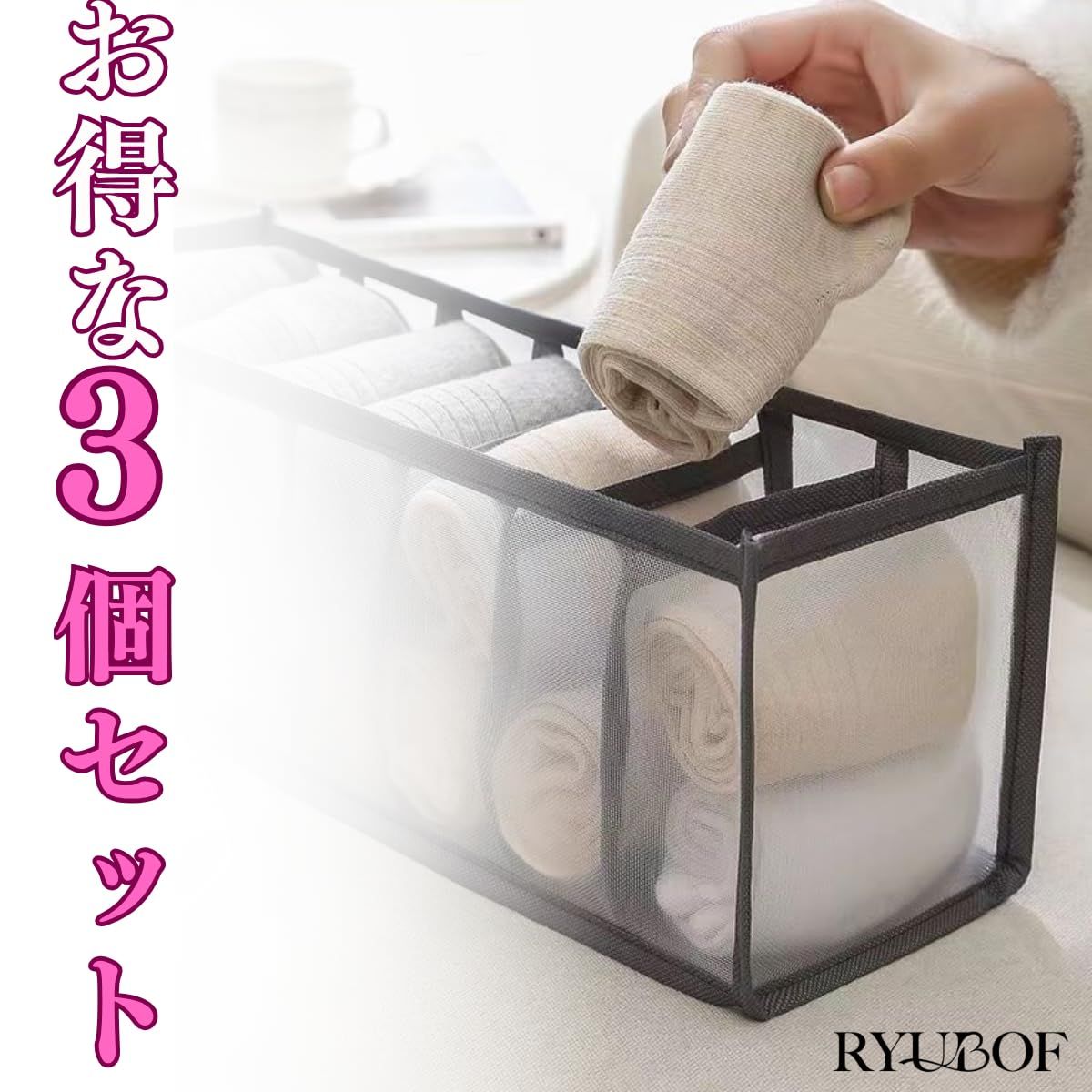 【衣類収納ボックス3個セット】この収納ボックスは靴下や下着ネクタイなどの小物を整理するのに最適な衣類収納の仕切り付き3個セットで引き出しの中をすっきり清潔に保ちます。【11仕切りで小物収納が完璧】幅2.9cmのポケットが合計11個の仕切り付きデザインで衣類や小物の定位置が決まるため朝の準備や衣替えの際にもスムーズに必要なものを取り出せます。【通気性に優れたメッシュ素材】全面に採用されたメッシュ素材は湿気を溜め込まず風通しを良くするため大切な衣類にカビが発生するのを効果的に防ぎ通気性が抜群です。【折りたたみ可能で省スペース】使用しない時には簡単に折りたたみができる構造になっておりクローゼットや押入れの隙間にコンパクトに収納できるため省スペースで場所を取りません。【清潔を保つ水洗い対応】日常的なほこりやにおい汚れが気になった場合は丸ごと水洗いが可能なので常に清潔な状態を保ちながら靴下下着などのデリケートな衣類収納として安心して長くご使用いただけます。