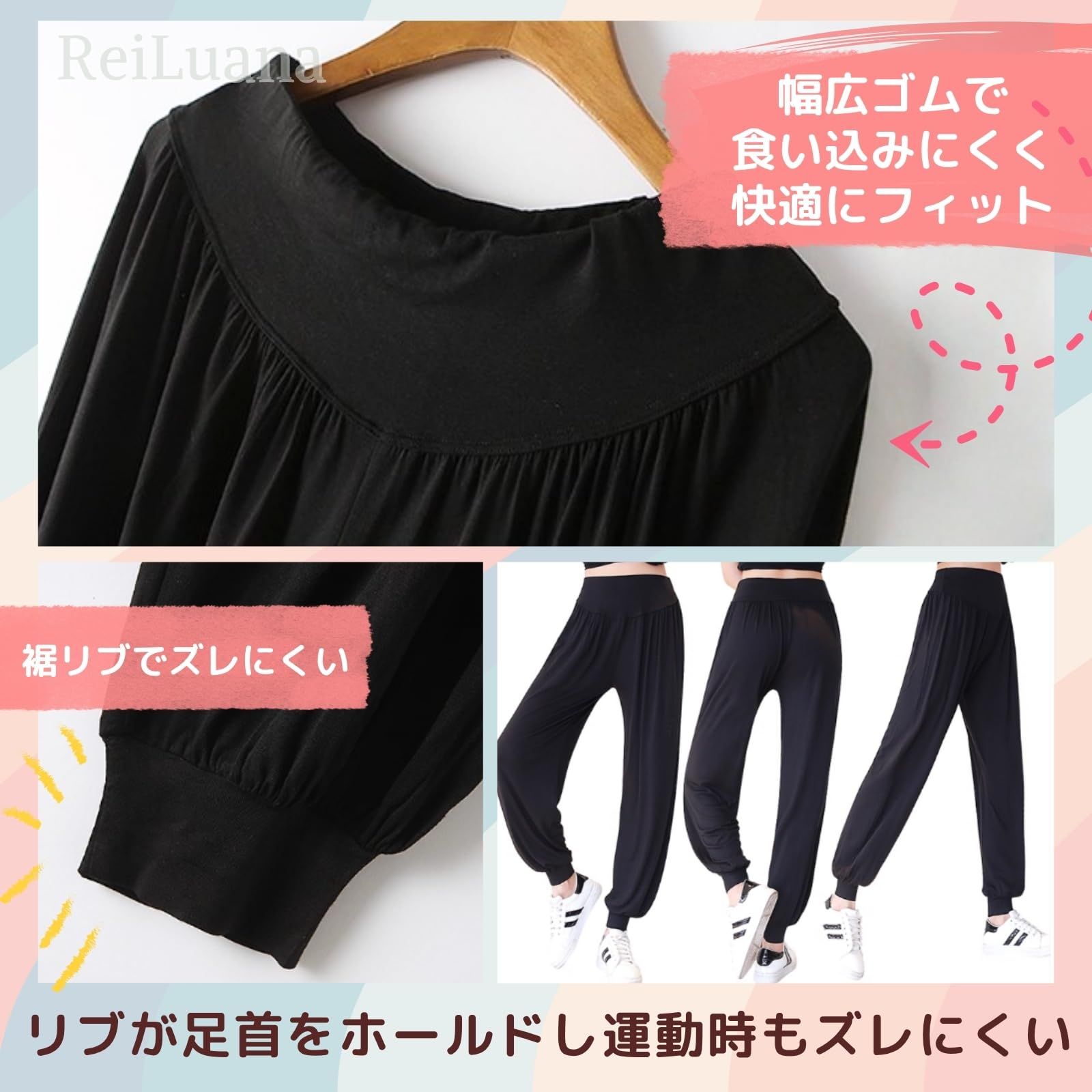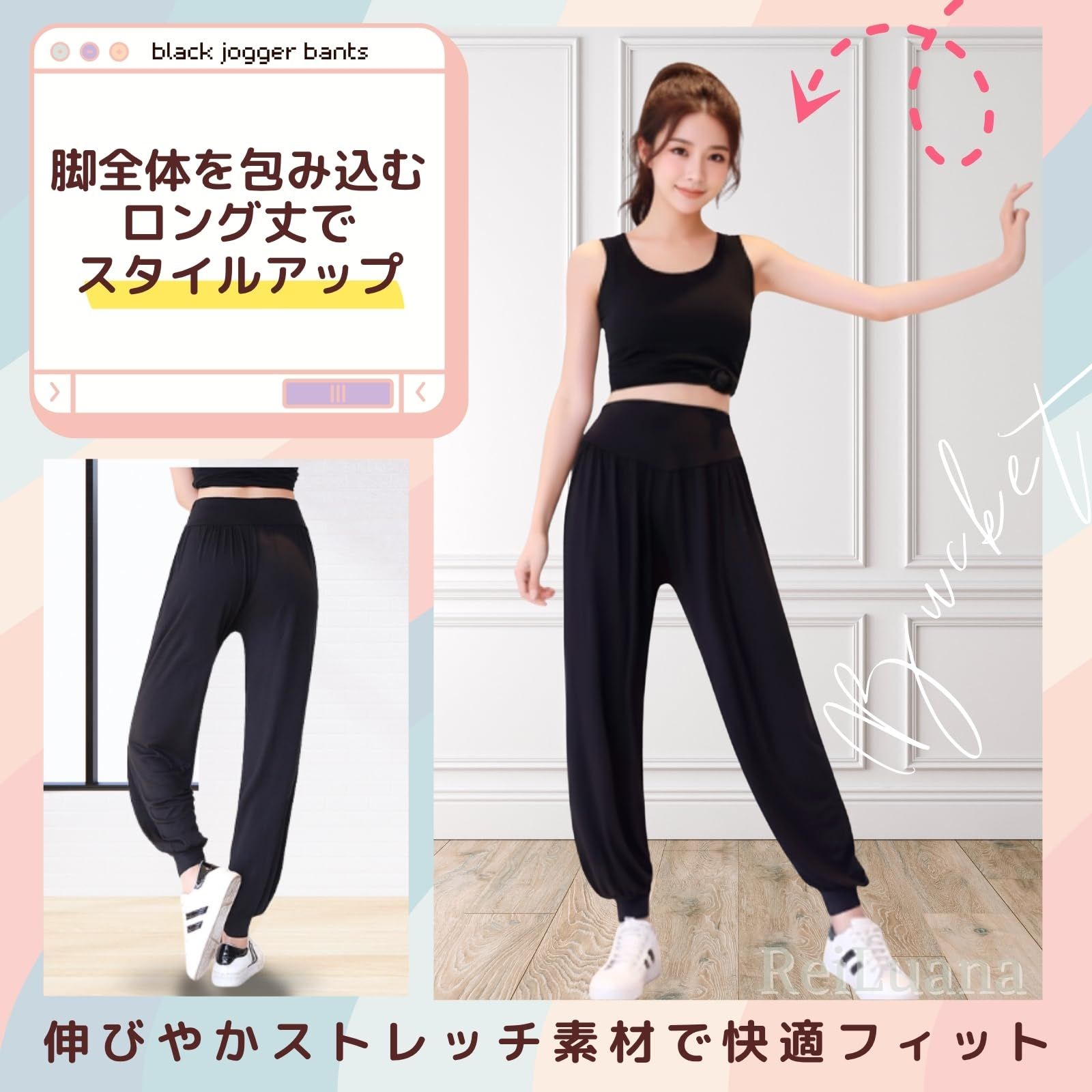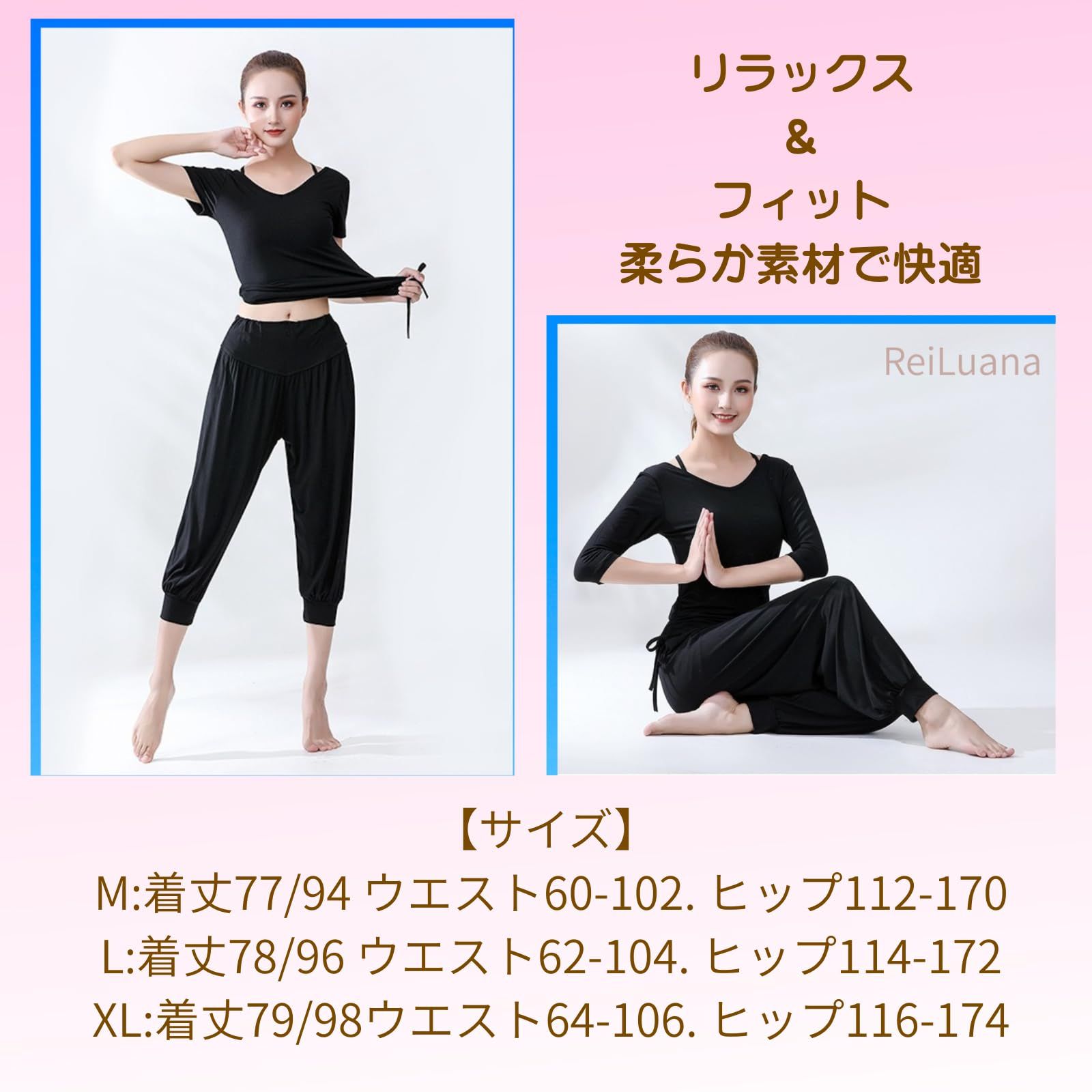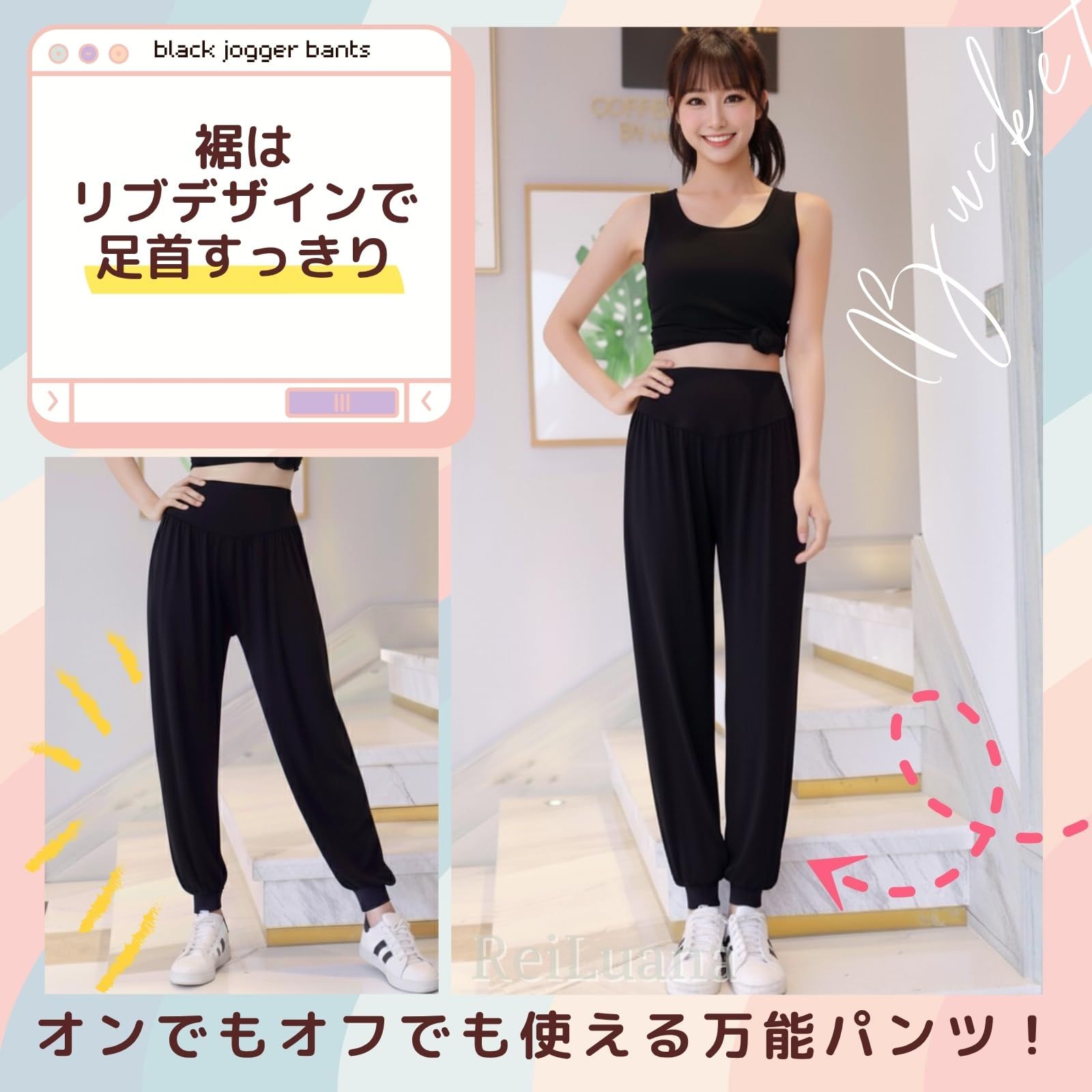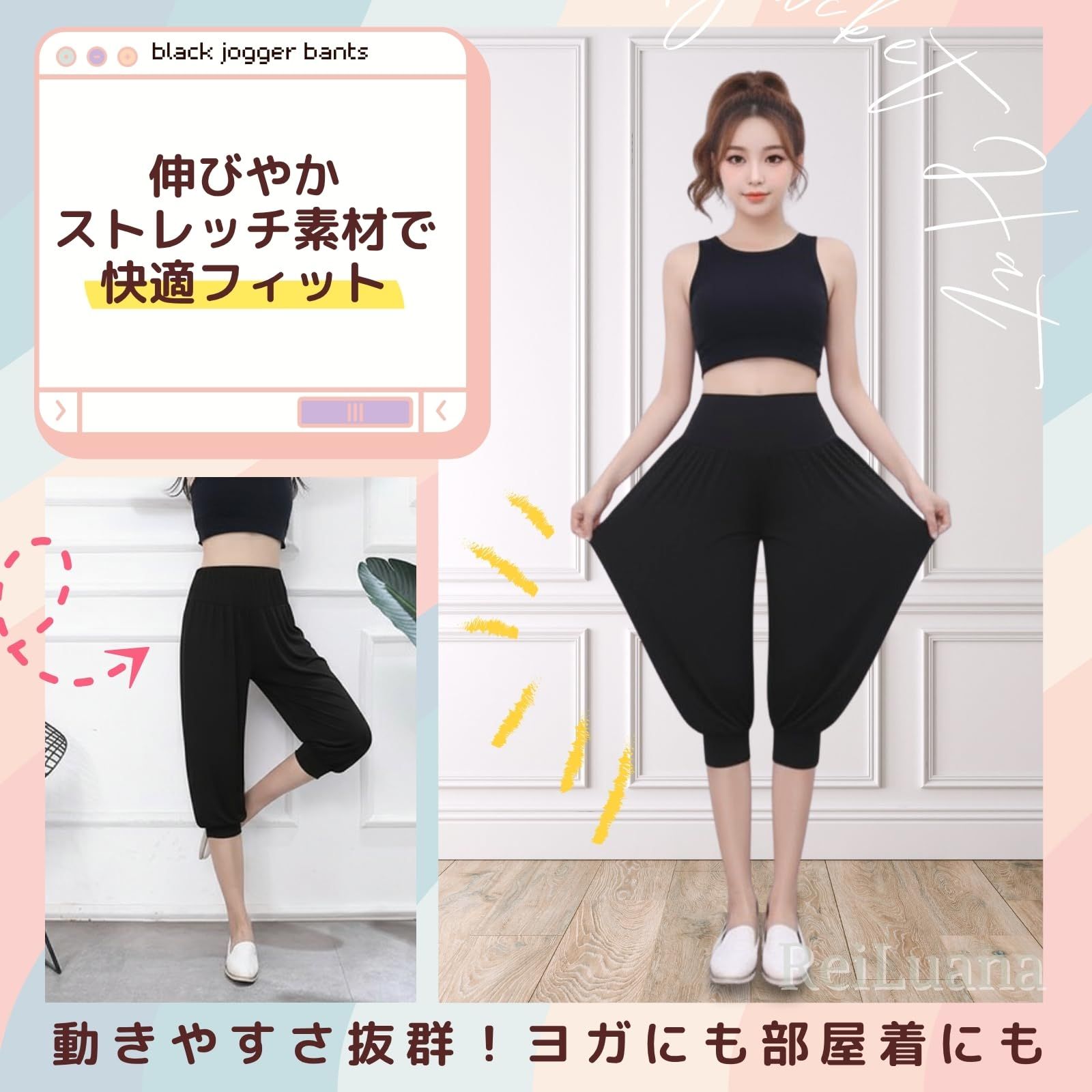 [ReiLuana] ヨガ パンツ レディース 七分丈 ジョガー 部屋着 ルームウェア スポーツ ストレッチ 美脚 足長 軽量 (JP, アルファベット, XL, ブラック10分丈) [ブラック10分丈] [XL]