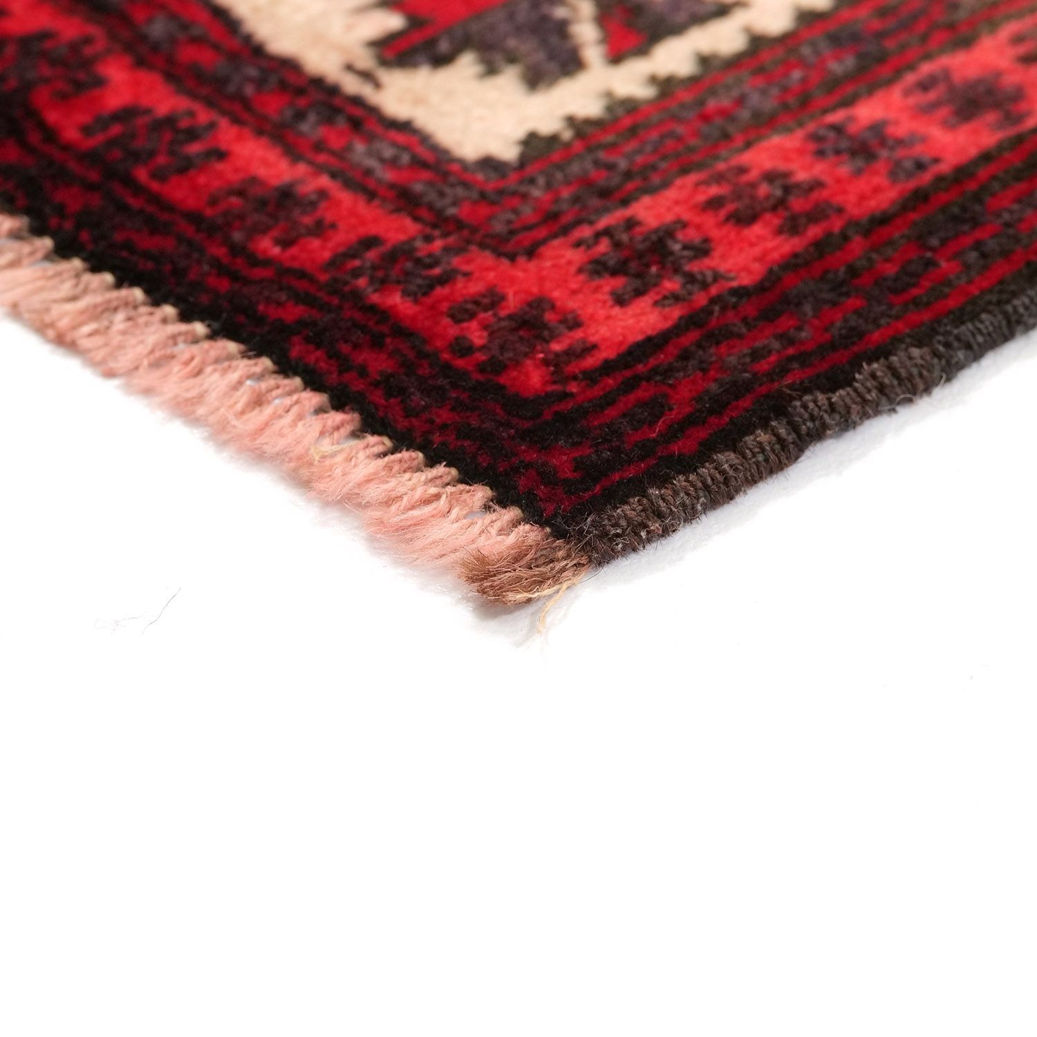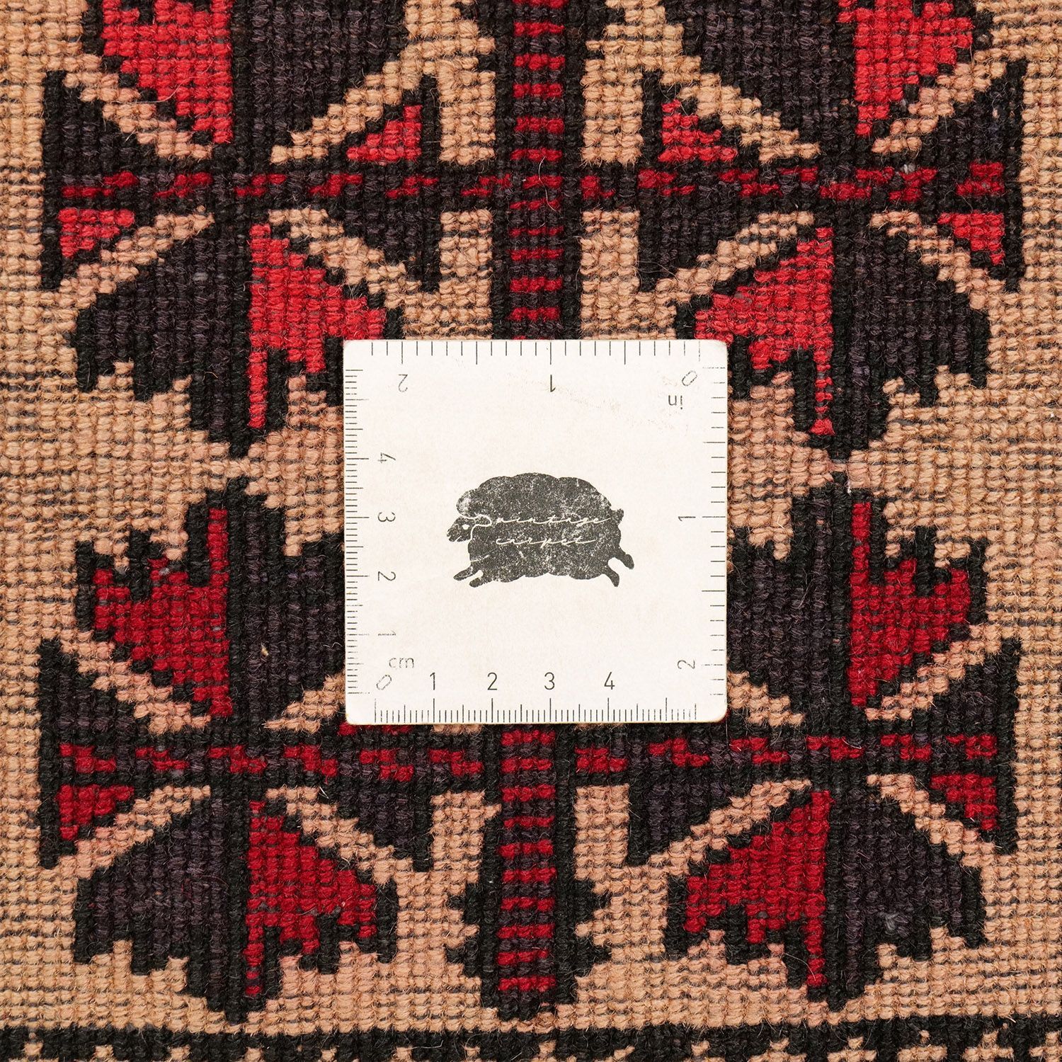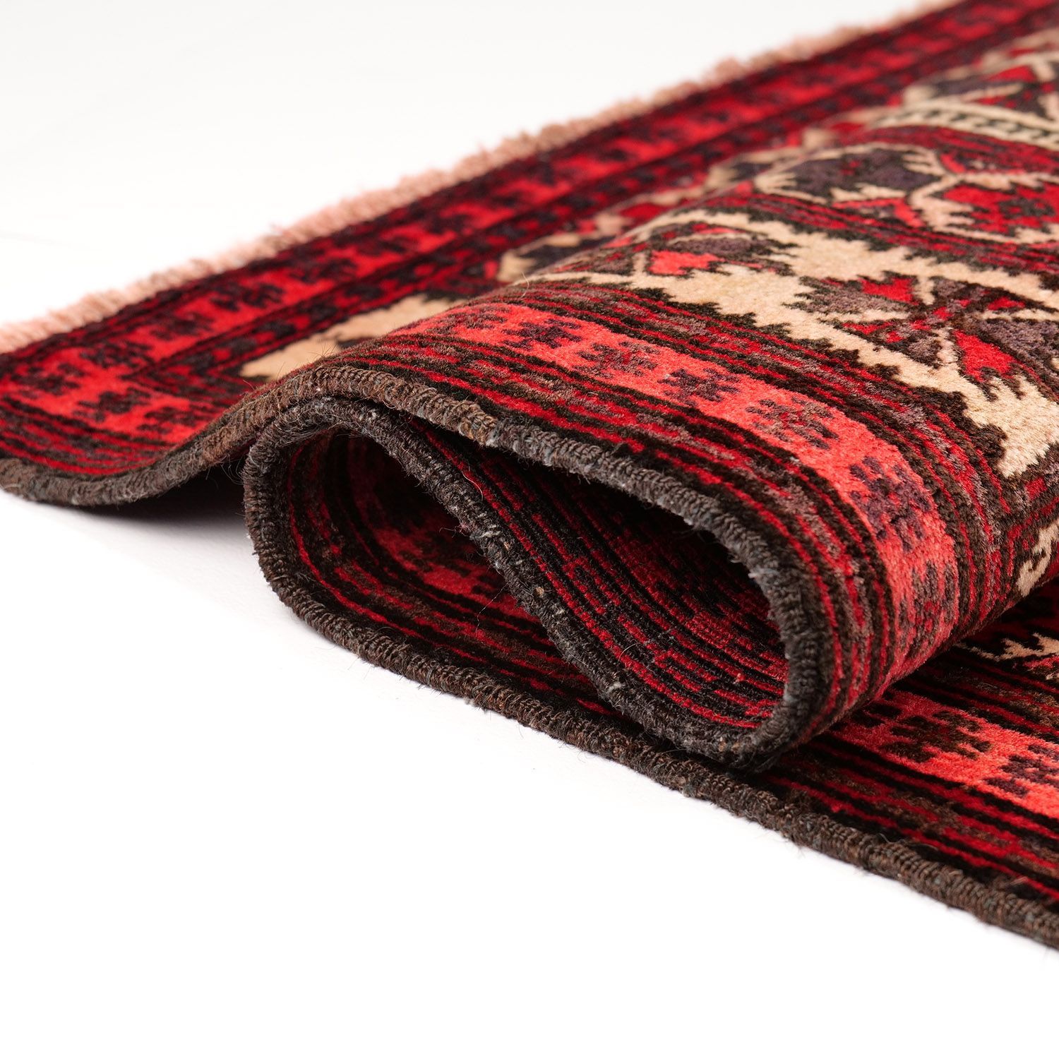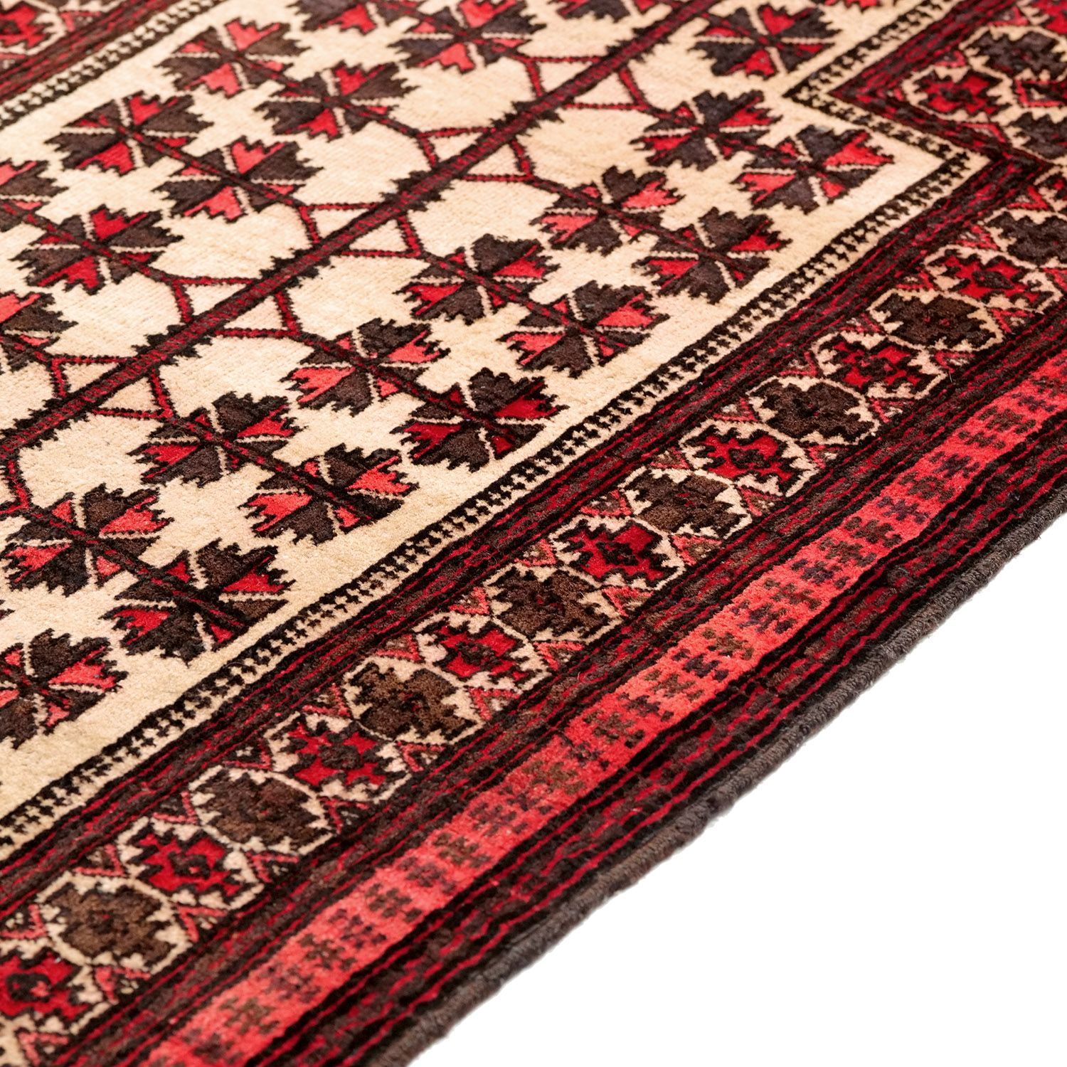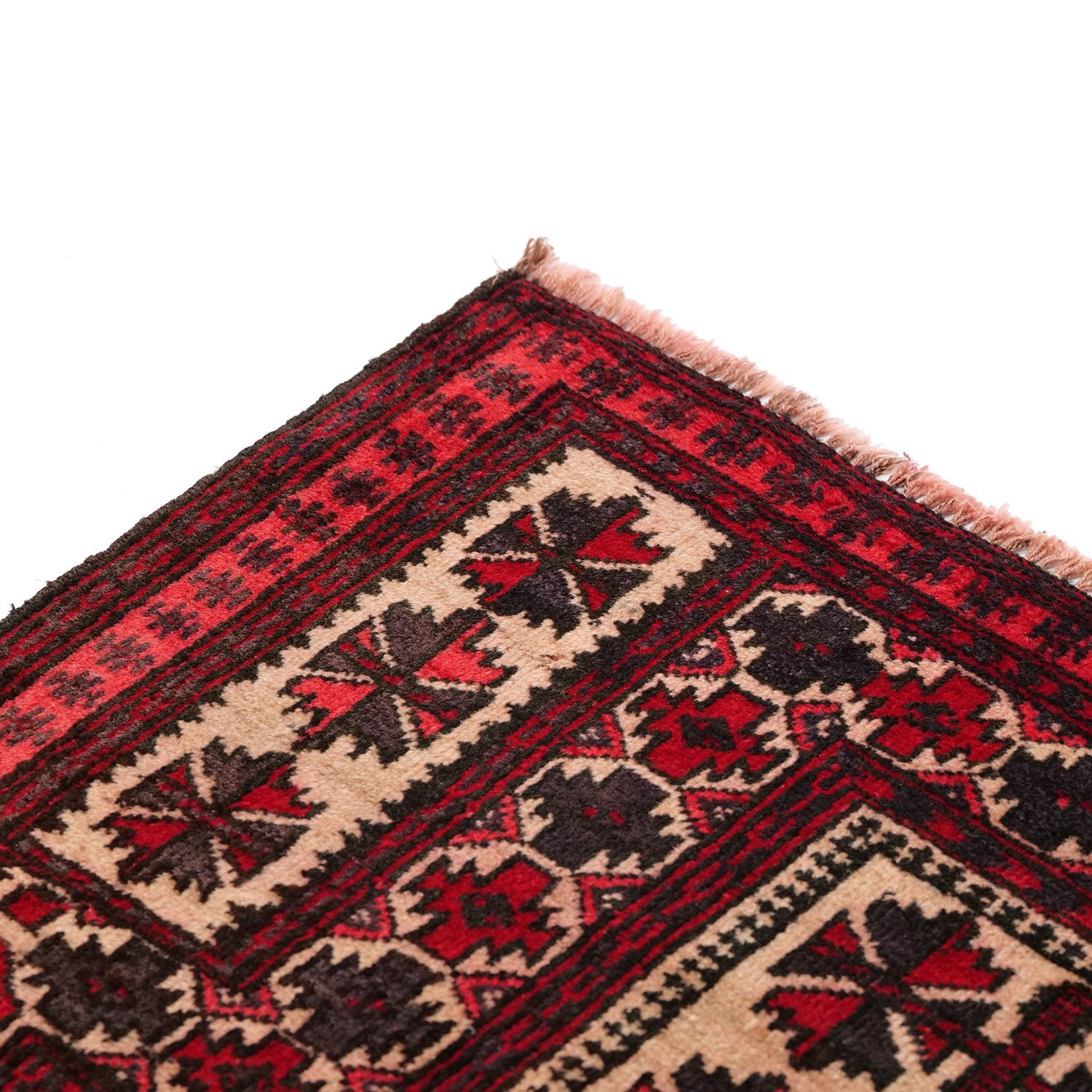生成りのフィールドに赤と黒のコントラストが映え、素朴ながらも荘厳な印象を与えます。ベースの生成り色は経年により柔らかなクリーム色へと変化しており、深みと温かみを増しています。トルバトジャム特有の細やかなボーダー文様が全体を引き締め、手仕事ならではの力強い美しさを感じさせます。