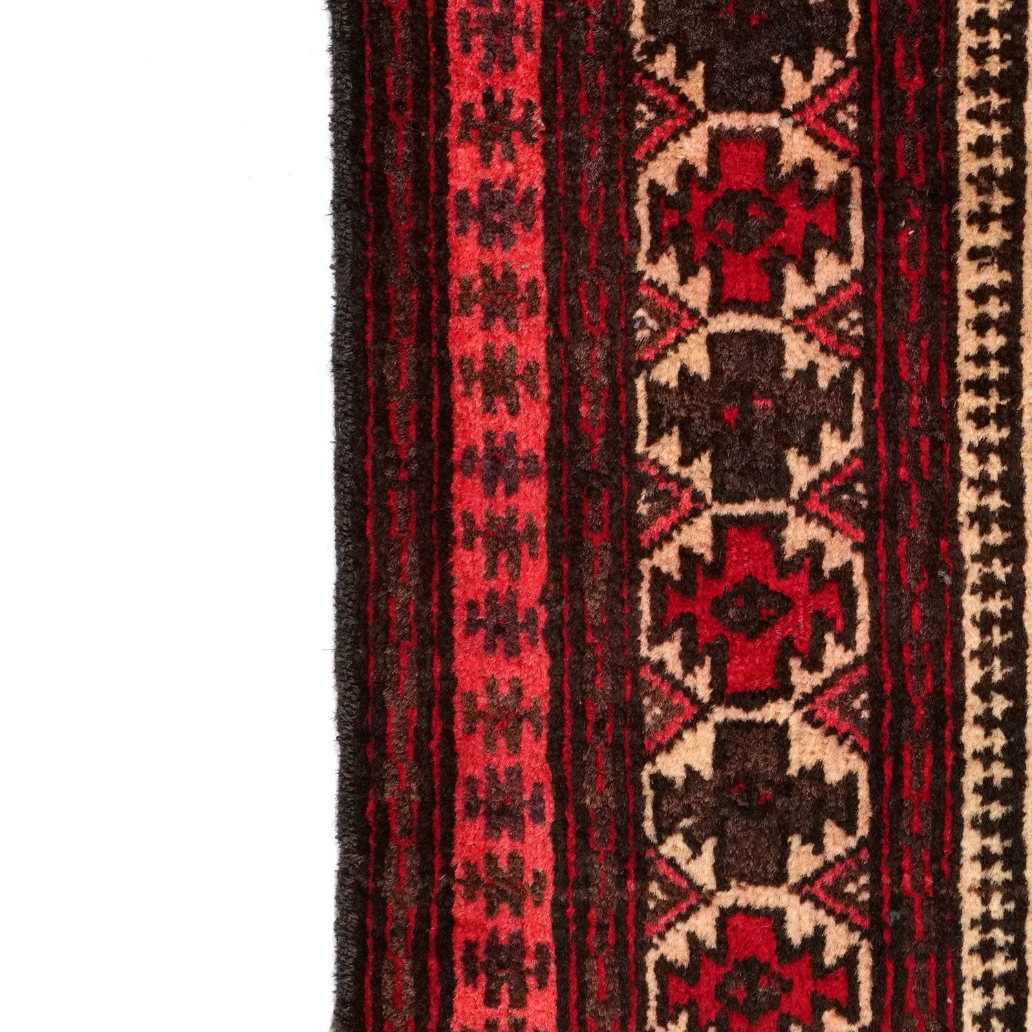 生成りを主調に、赤と黒、茶がバランスよく織り込まれています。生成り部分は経年により温かみのあるベージュ調へと変化し、赤と黒の対比がより柔らかく、落ち着いた印象を与えています。