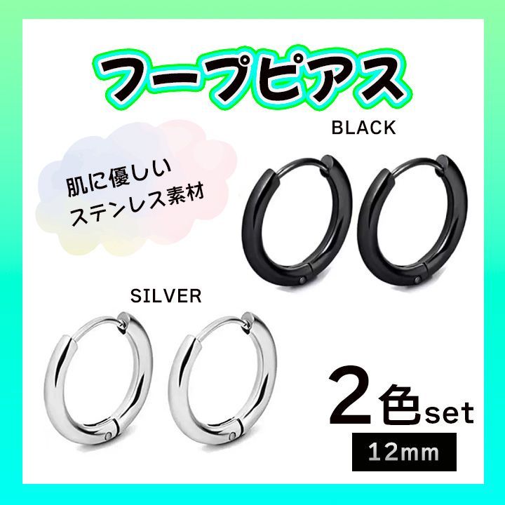 フープピアス 2色4個セット 黒 銀 シルバー ステンレス イヤーカフ