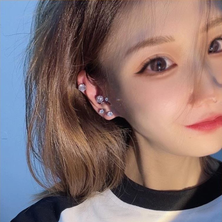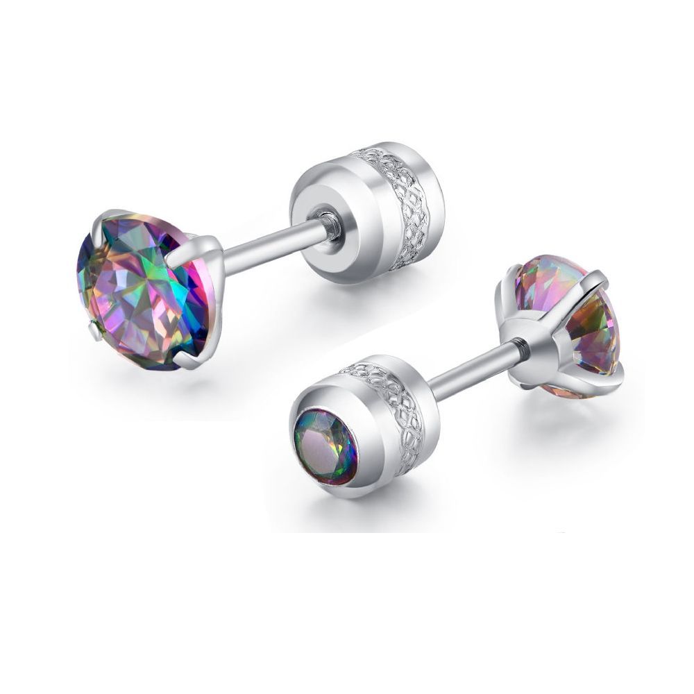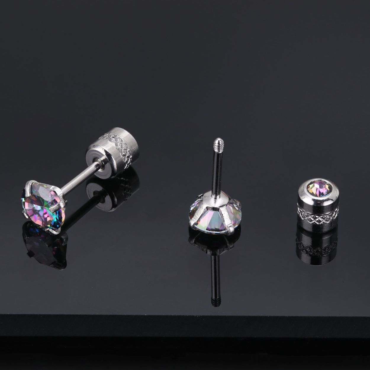ピアス金属アレルギー サージカルステンレス ネジ式キャッチ 立爪 リバーシブル レディース メンズ 両耳用 1ペア セカンドピアス 仕事 プレゼント マルチ
