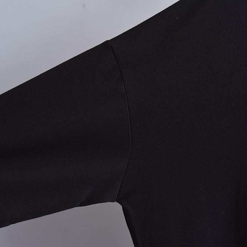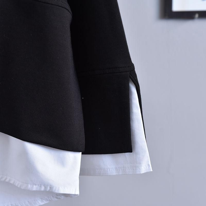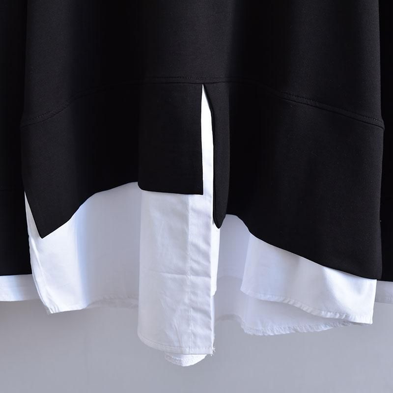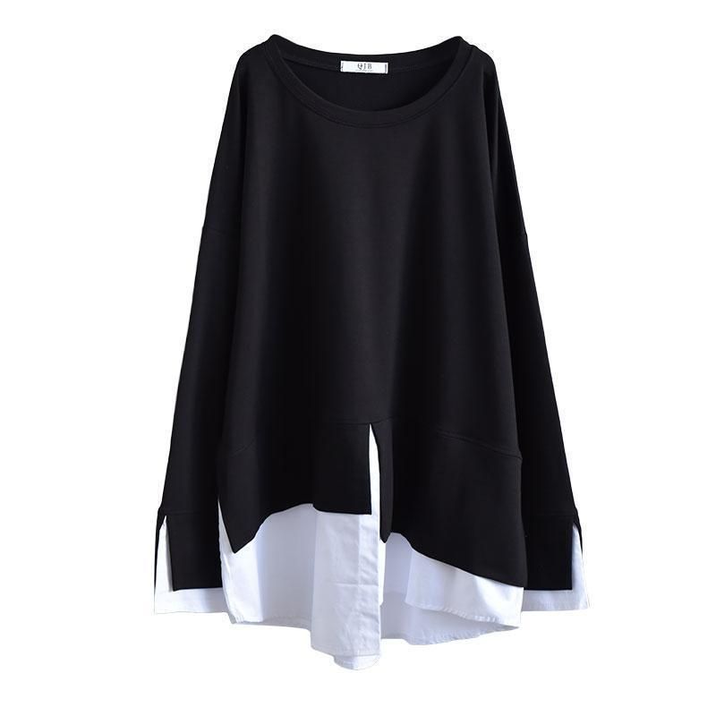 重ね着風Tシャツチュニッククルーネック無地カットソーゆったり切り替えアシンメトリーレディーススリットトップス配色長袖