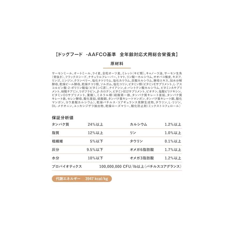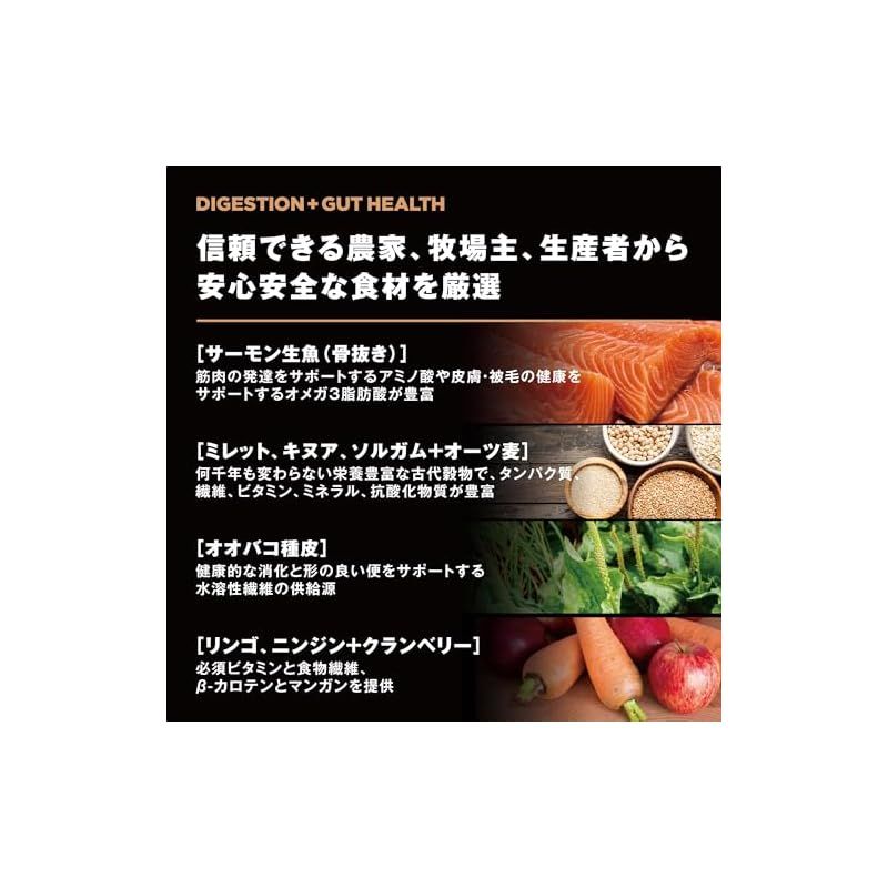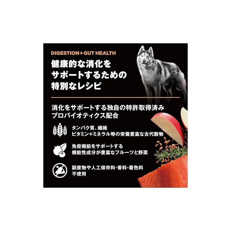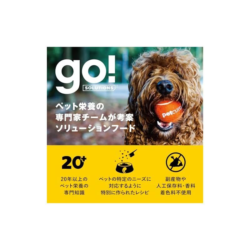 【商品概要】 【厳選した食材で、美味しくお悩みを解決】20年以上のペット栄養の専門知識と厳選した安心食材。美味しく健康的にお悩みを解決する最適なレシピ。それがGO!SOLUTIONです。 【消化サポート・腸の健康をケア】犬の健康に不可欠な消化器系の健康ケアをするために作られた古代穀物を使用した特別なレシピ。腸内環境を整えたい、お腹の調子を安定させたい、消化器系のケアがしたい。そんなお悩みに。 【古代穀物を使用した特別レシピ】話題の食材「古代穀物」を使用。栄養、食物繊維も豊富で腸内環境を整えてくれます。消化管を生き延びて腸の消化をサポートするように設計された特許取得済みのプロバイオティクス、健康な善玉菌をサポートする3種類の酵母ブレンドを使用。 【安心・安全の厳選レシピ】副産物・人工添加物(合成保存料・香料・着色料)不使用。 【全年齢対応・レギュラー粒タイプ】全年齢対応で、よく噛んで食べられる丸形のレギュラー粒タイプ(約10-13mm)です。*新鮮素材を使用しているため、季節によって粒の形・大きさにばらつきがあります。 【商品説明】 【厳選した食材で、美味しくお悩みを解決】20年以上のペット栄養の専門知識と厳選した安心食材。美味しく健康的にお悩みを解決する最適なレシピ。それがGO!SOLUTIONです。【消化サポート・腸の健康をケア】犬の健康に不可欠な消化器系の健康ケアをするために作られた古代穀物を使用した特別なレシピ。腸内環境を整えたい、お腹の調子を安定させたい、消化器系のケアがしたい。そんなお悩みに。【古代穀物を使用した特別レシピ】話題の食材「古代穀物」を使用。栄養、食物繊維も豊富で腸内環境を整えてくれます。消化管を生き延びて腸の消化をサポートするように設計された特許取得済みのプロバイオティクス、健康な善玉菌をサポートする3種類の酵母ブレンドを使用。【安心・安全の厳選レシピ】副産物・人工添加物(合成保存料・香料・着色料)不使用。【全年齢対応・レギュラー粒タイプ】全年齢対応で、よく噛んで食べられる丸形のレギュラー粒タイプ(約10-13mm)です。*新鮮素材を使用しているため、季節によって粒の形・大きさにばらつきがあります。 【商品詳細】 ブランド:Go! Solutions 商品種別:ペット用品 商品名:【腸内ケア】 GO! SOLUTIONS 消化+腸の健康ケア ドッグフード 2.3kg サーモン プロバイオティクス フルーツ 全年齢 全犬種 [ゴーソリューションズ] 製造元:グローバルペットニュートリション 商品番号:GO117 商品内容:2.3kg