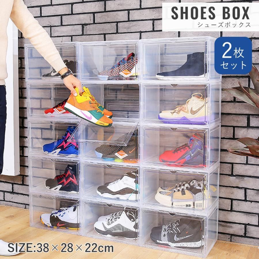 シューズボックス シューズラック2点セット 収納ボックス スニーカー シューズケース 収納ケース 靴 収納 靴箱 クリア 透明 小物 化粧品収納 玄関 折りたたみ
