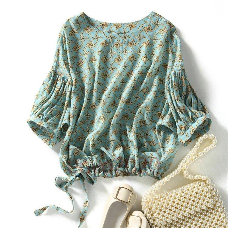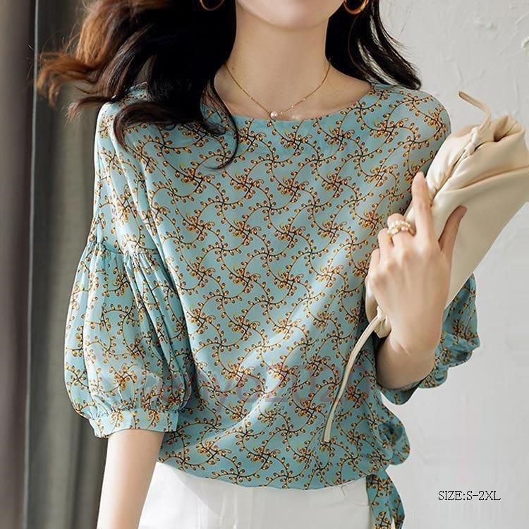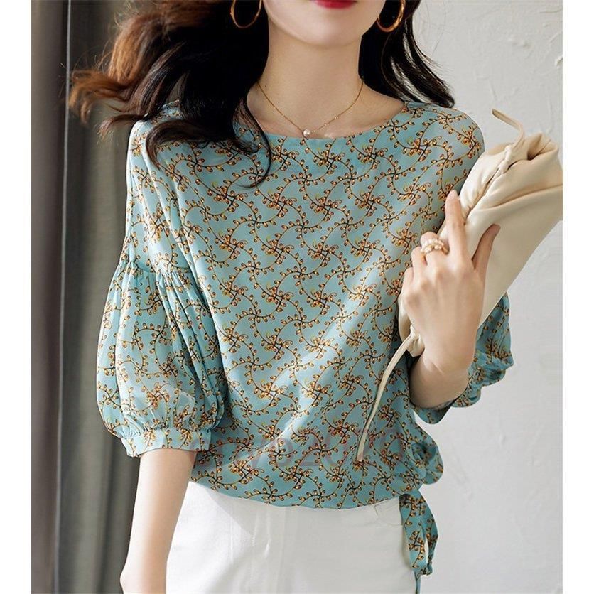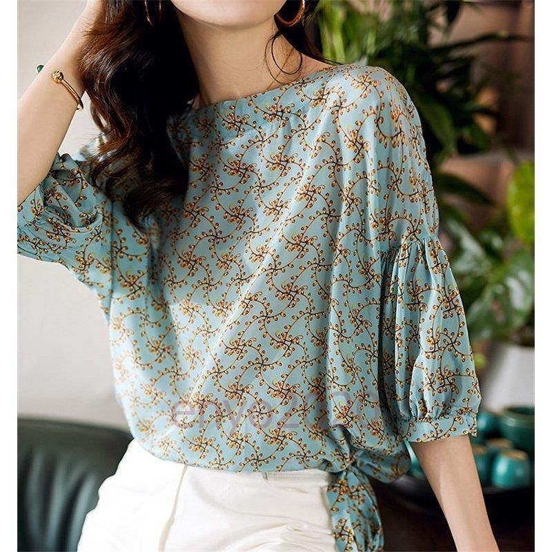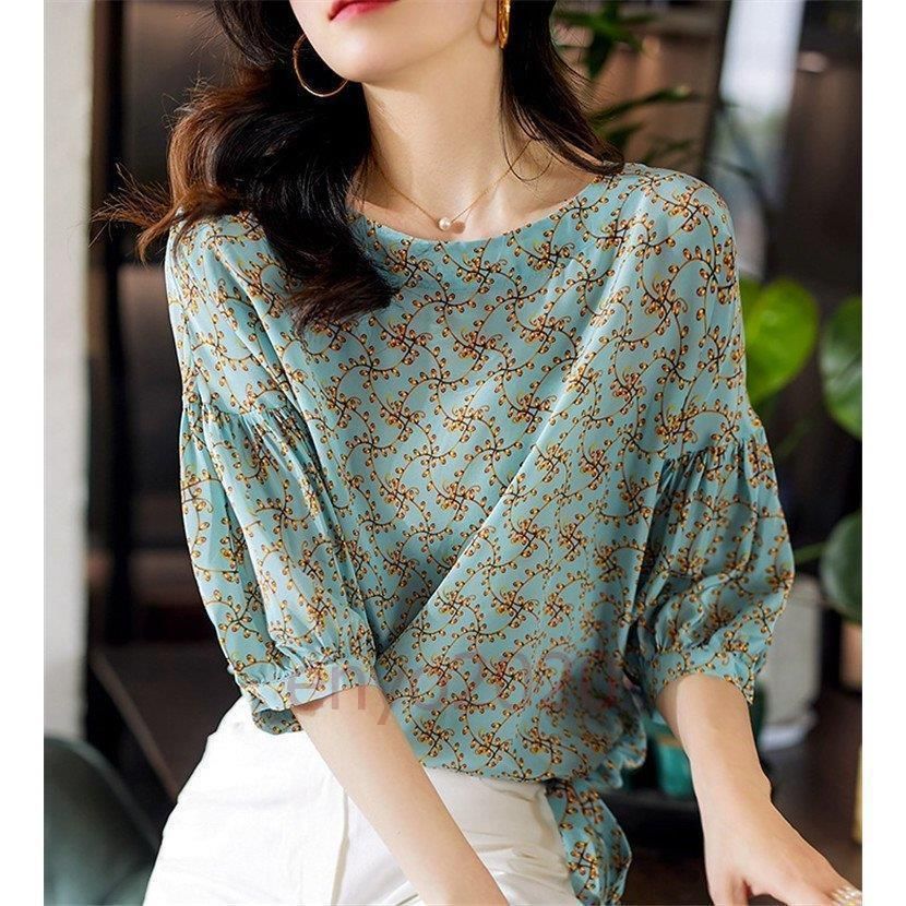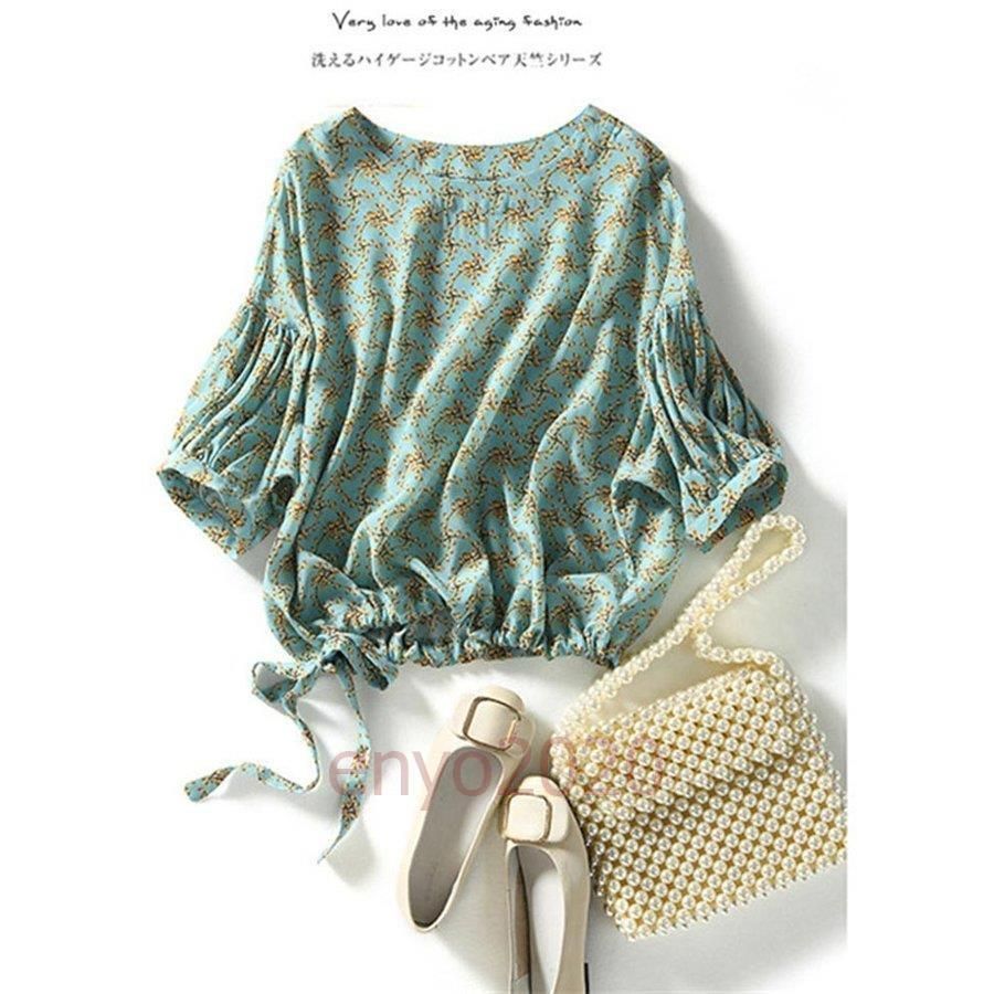 トップス プルオーバー シャツブラウス ブラウス レディース 5分袖 Uネック 花柄 柄 プリント 通気性 大きいサイズ ゆったり 体型カ08213