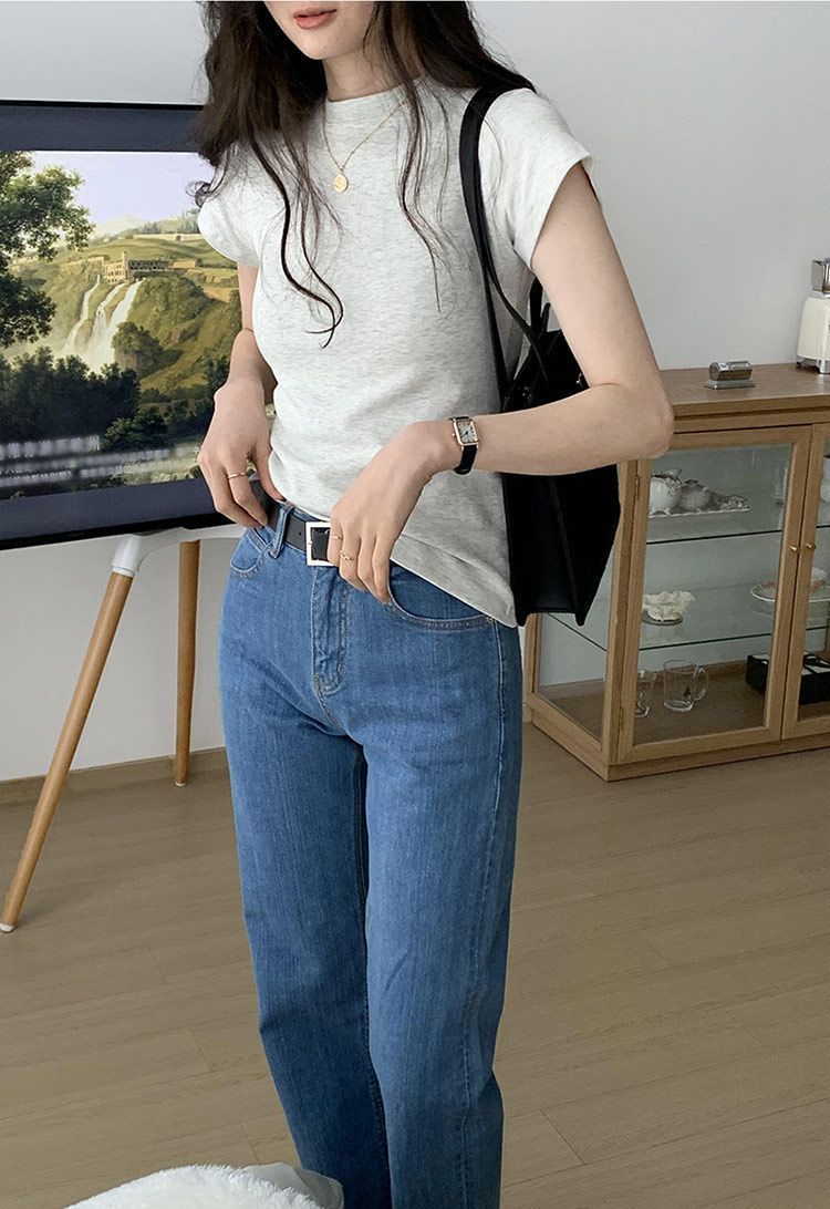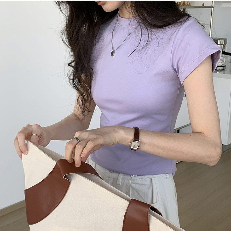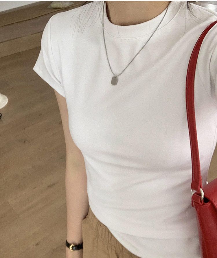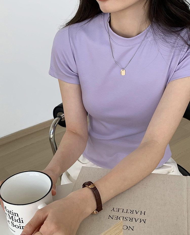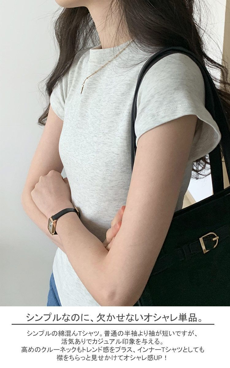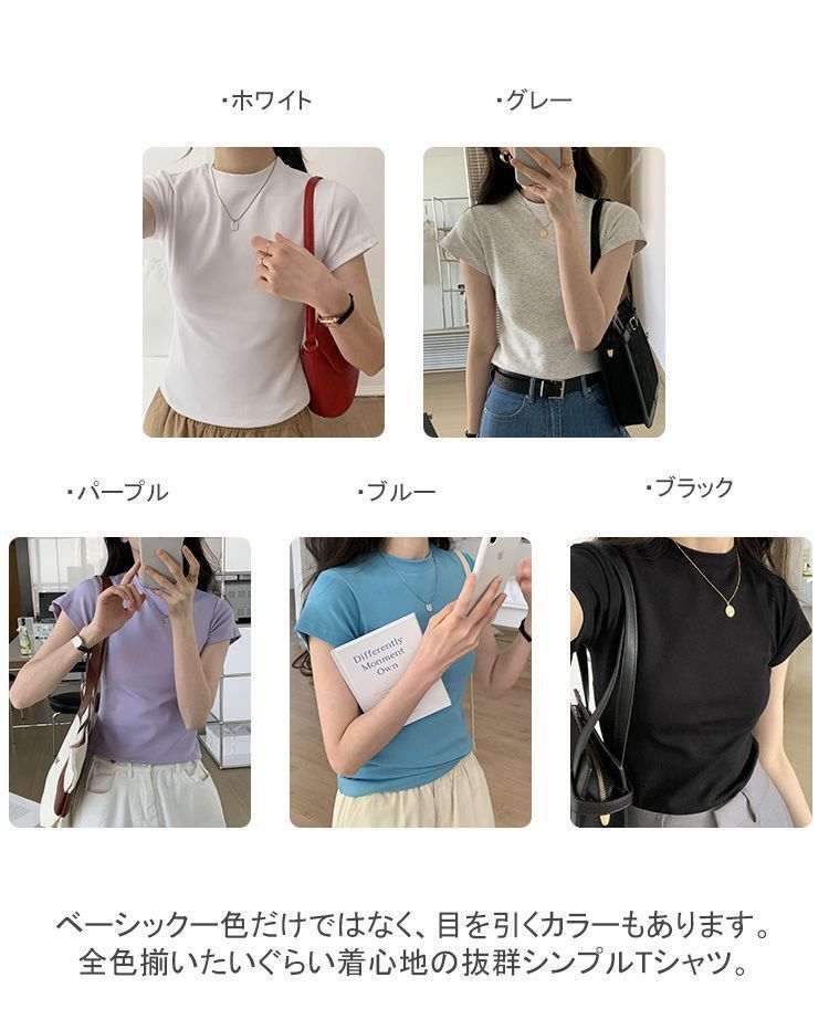 半袖tシャツ レディース tシャツ 半袖 カットソー Tシャツ クルーネック トップス 春夏 袖短い プチハイネック コットン 綿 無地 フィット