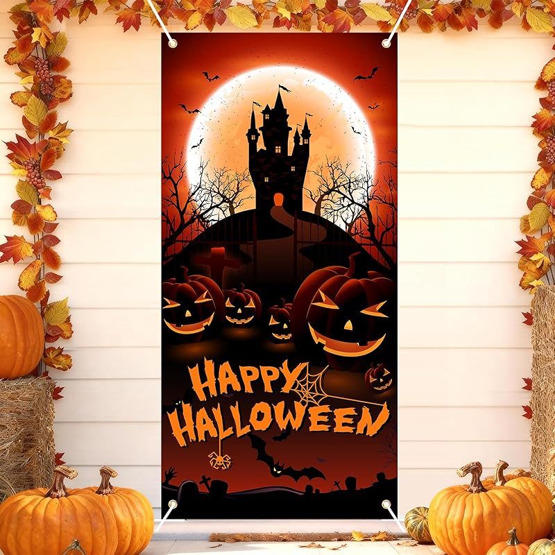 【セット内容(取り扱いの注意:対象年齢6+以上)】ハロウィンタペストリー×1枚(サイズ:縦90cm×横185m 、素材:ポリエステル)