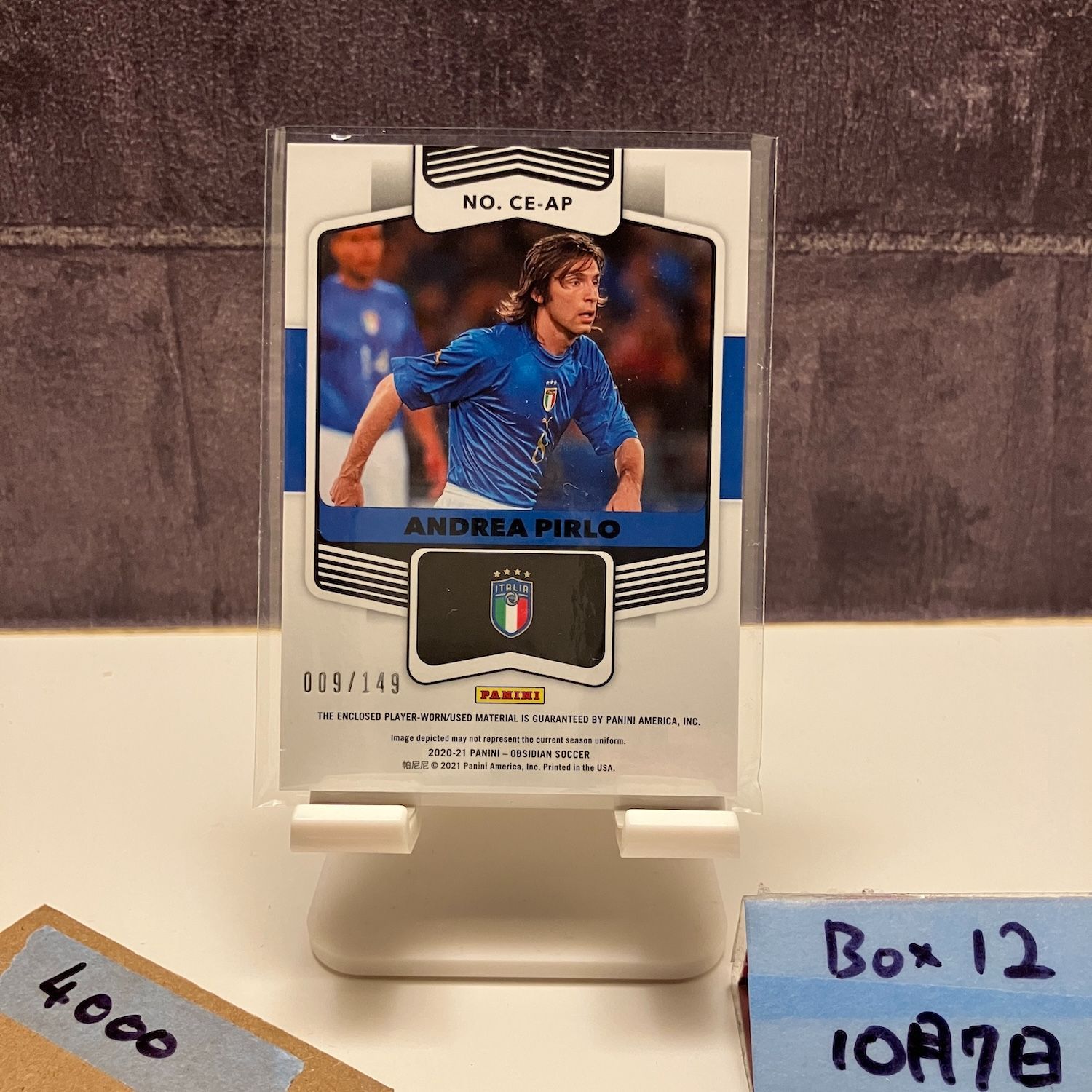 2020-2021 Panini Obsidian Andrea Pirlo 009/149 ITALY NATIONAL TEAM Dual Swatch ジャージ Cutting Edge カード