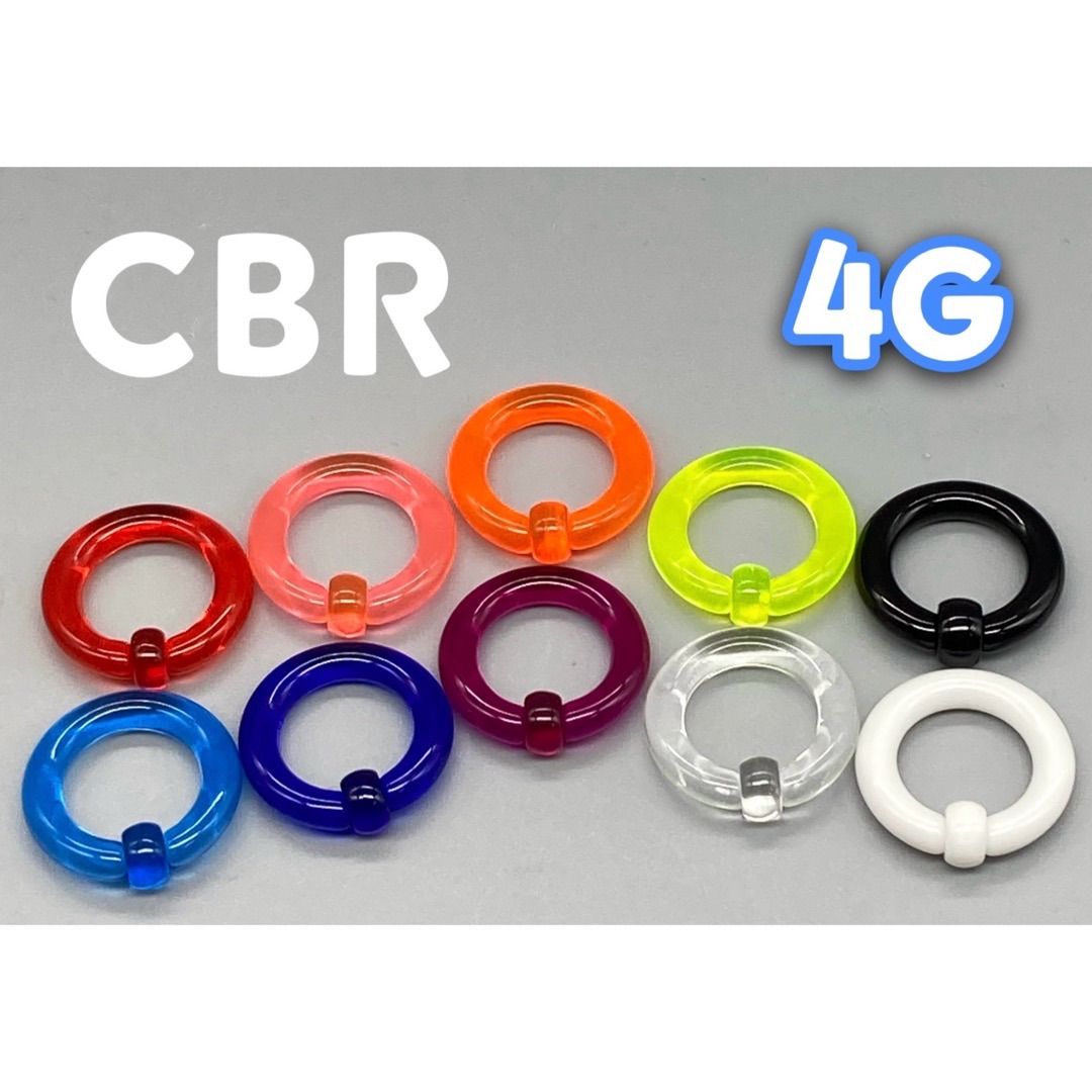 ボディピアス アクリル製 CBR 4G 5mm レッド オレンジ ピンク イエロー ライトブルー ダークブルー パープル クリア ホワイト ブラック