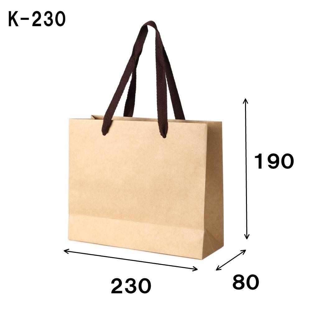 井上紙業 手提げ紙袋 無地 クラフト 丸ひも [10枚] 高級 クラフトバッグ 紙袋 ペーパーバッグ プレゼント袋 Kクラフト (K-230 / 230x80x190)
