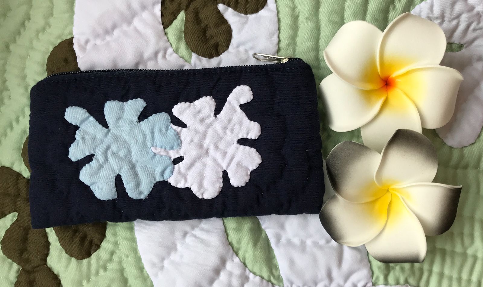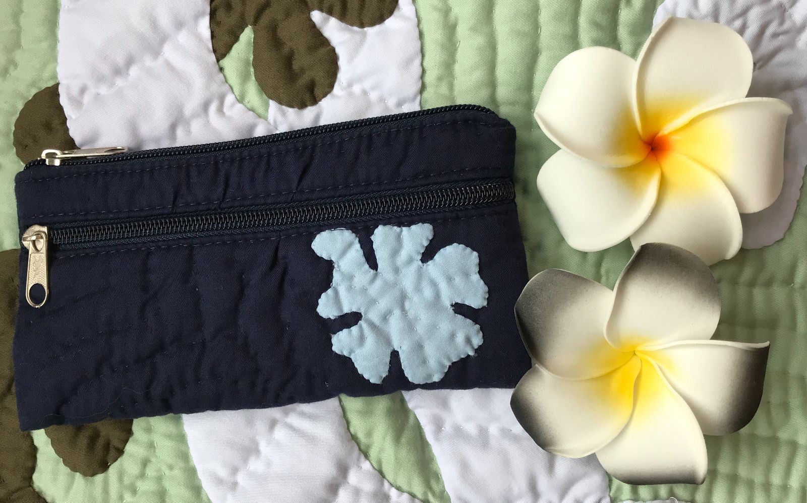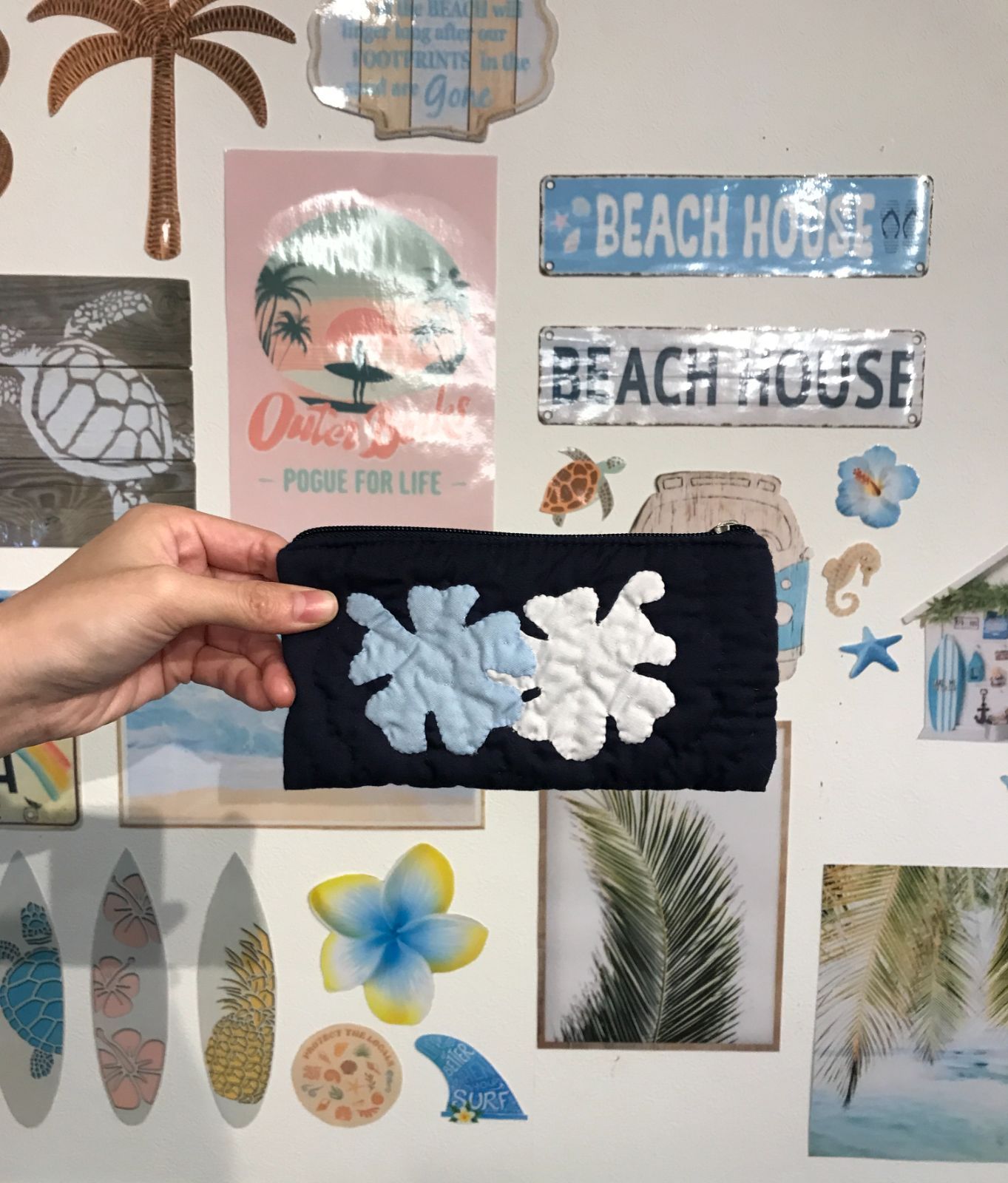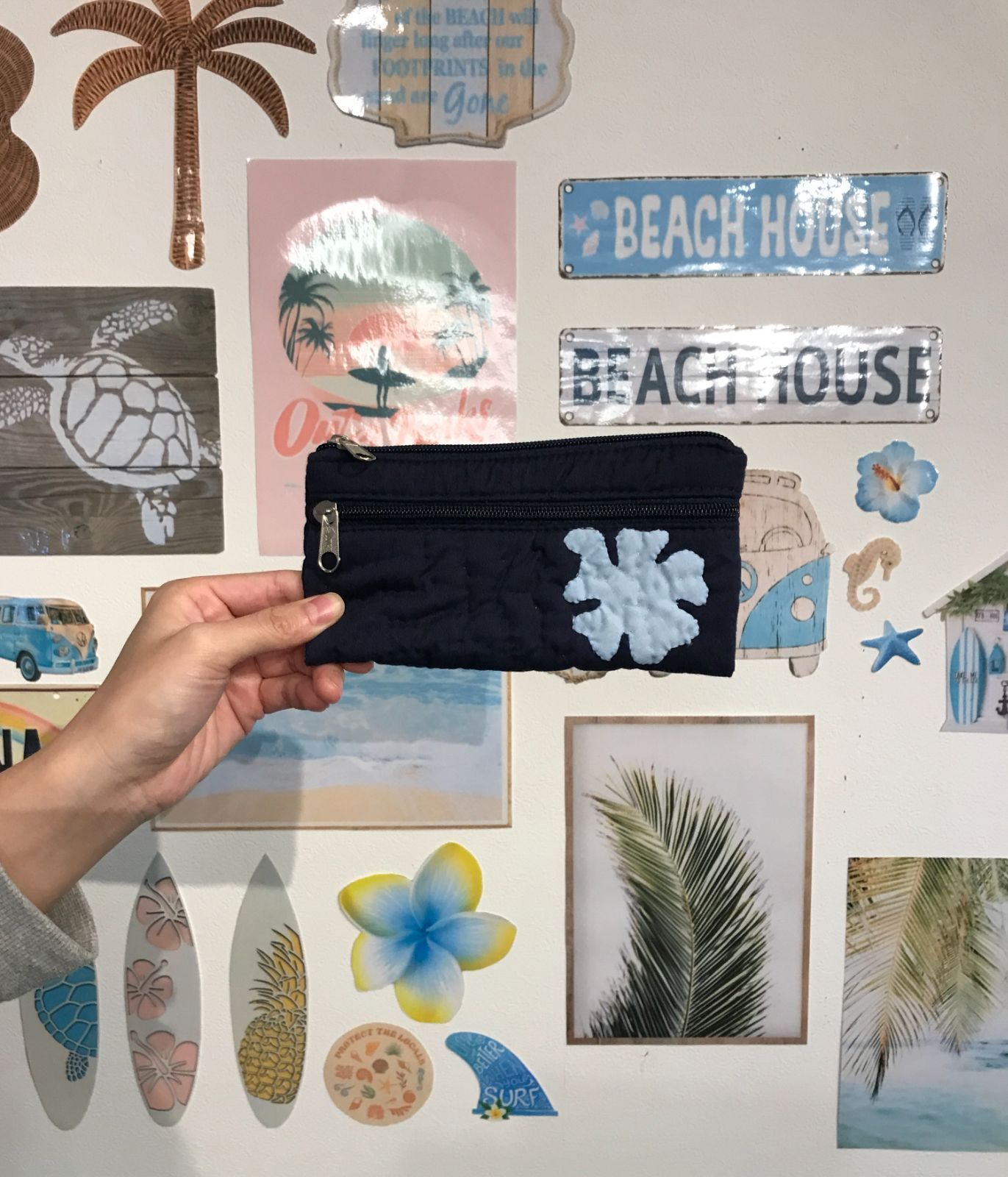 <正規品>カードポーチ♡ハイビスカス♡ネイビーブルー♡ハワイアンキルト