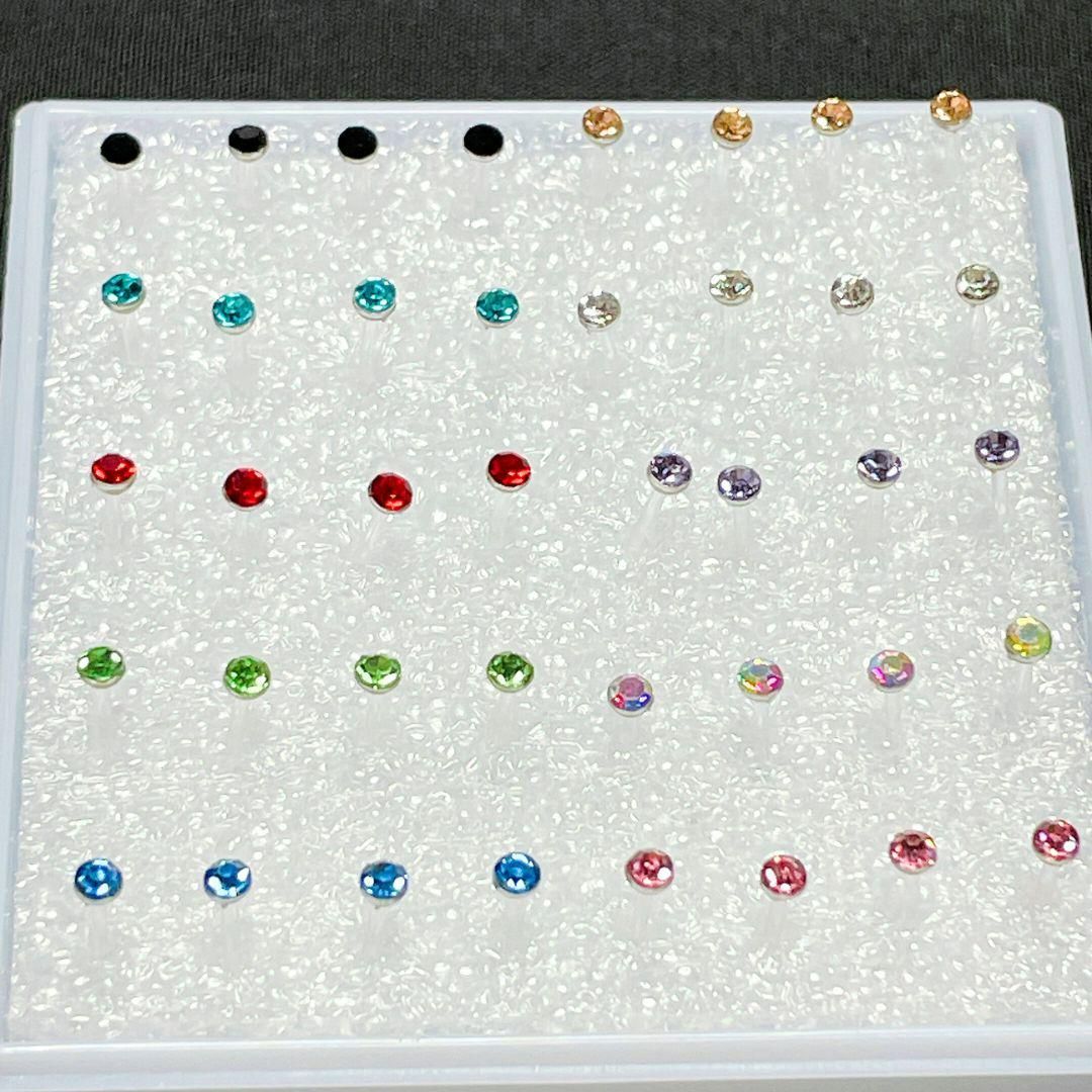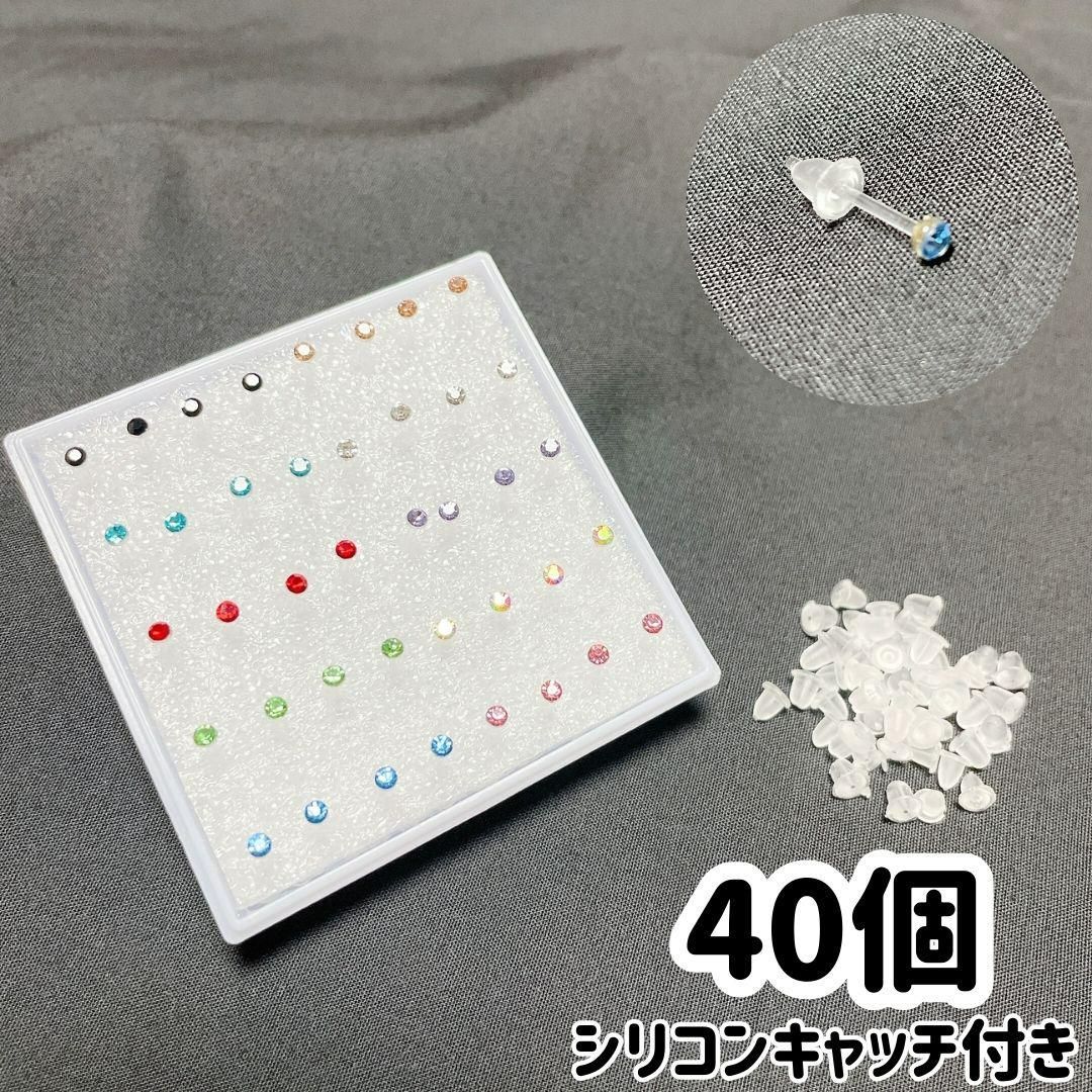 樹脂ポスト 透明 ピアス 2mm カラー ストーン アレルギー対応 40本セット