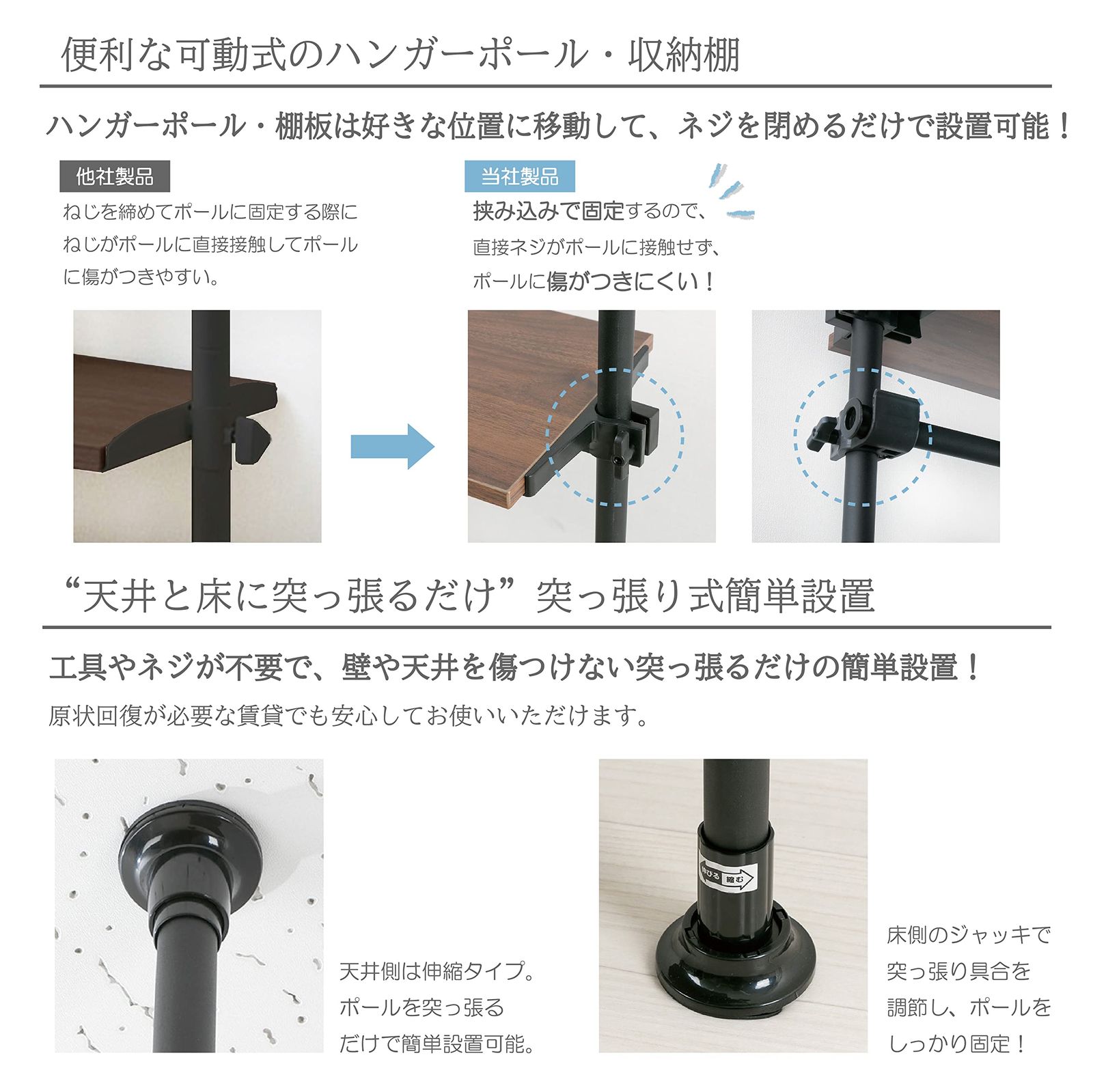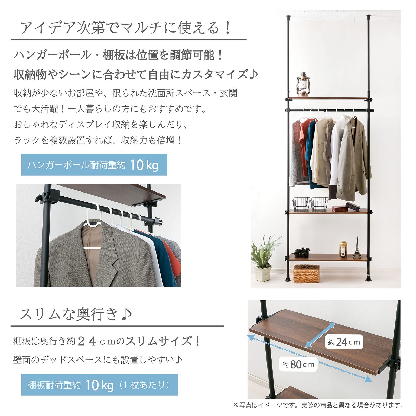 新品 武田コーポレーション 【つっぱり棚・ハンガーラック・収納】 ウォールナット/ブラック 90×24×270cm 突っ張りデザインハンガーラック 90 T1-DR90BK