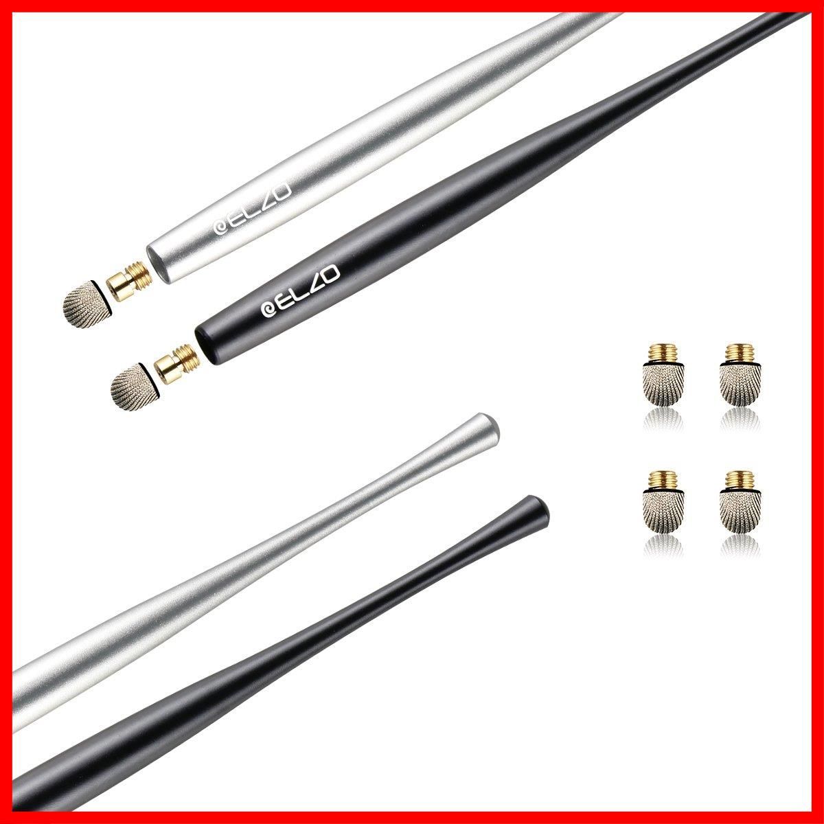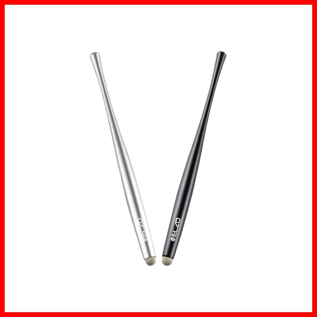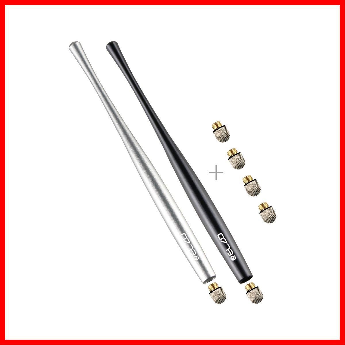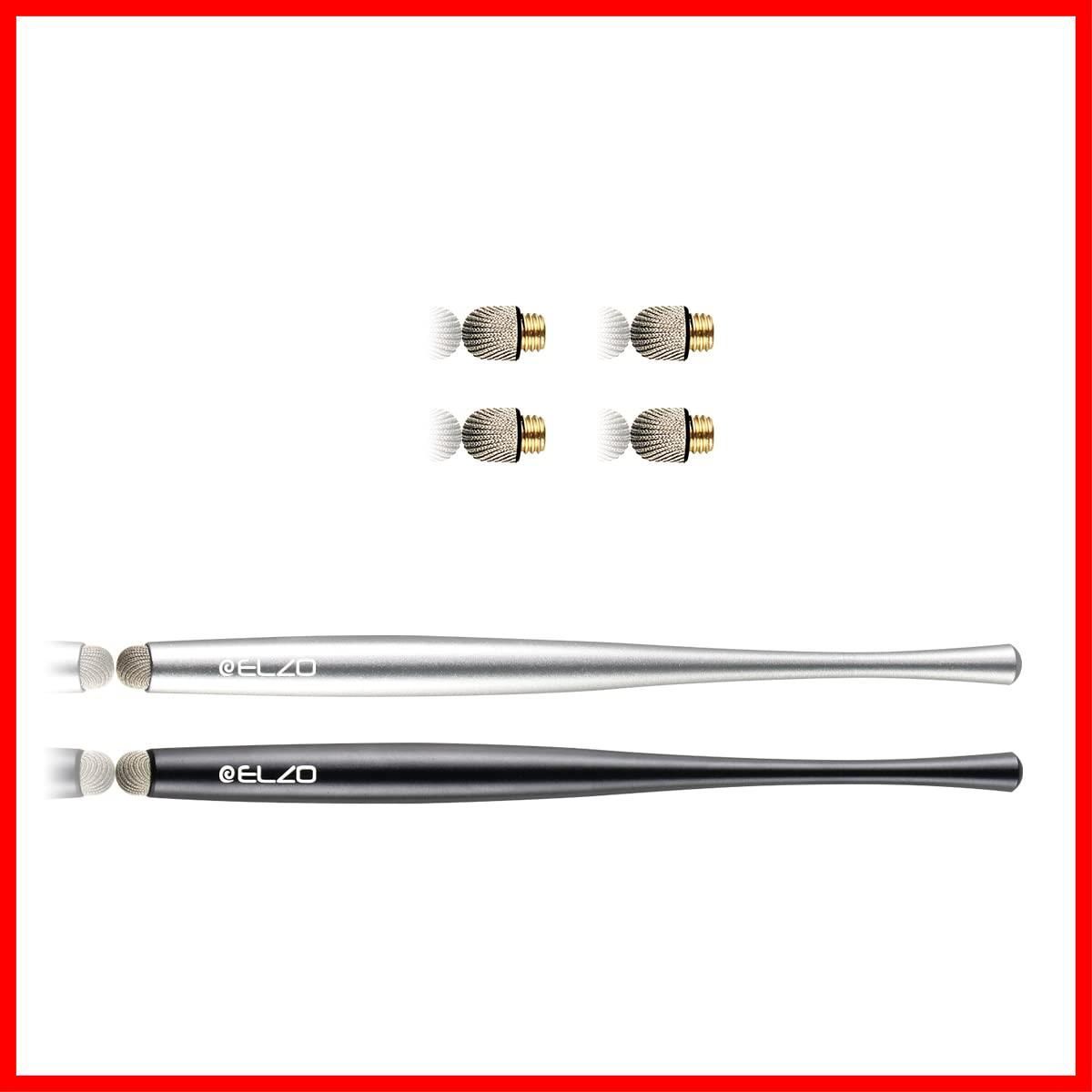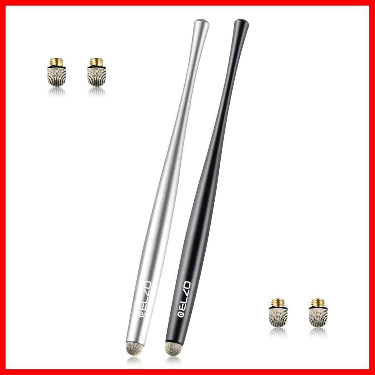 Elzo スタイラスペン タッチペン 極細 ツムツム 2本(黒、シルバー) 交換用導電繊維ペン先4個 交換式 アルミ製 スマートフォン タブレット&iPad&Android& Galaxy Microsoft Surface iPhone LGなどの静電容量式スクリーン製品に対応