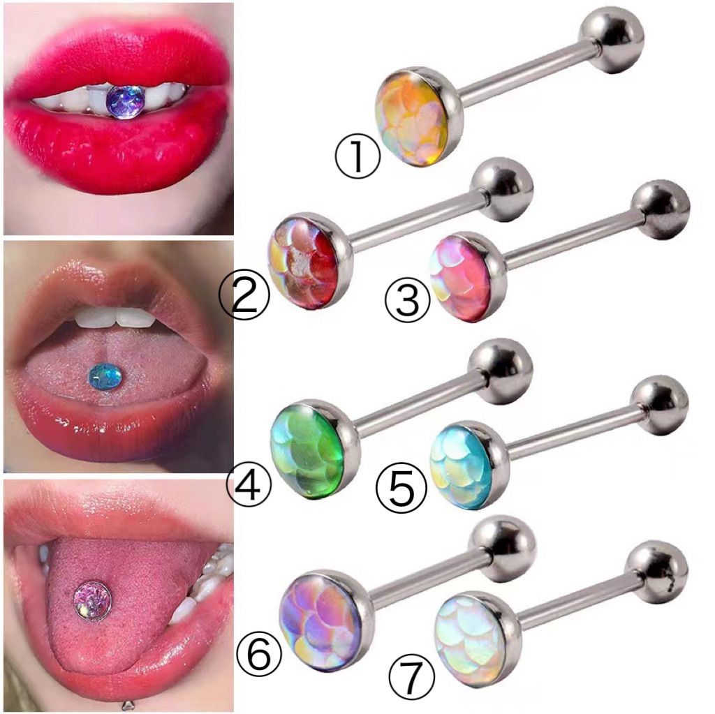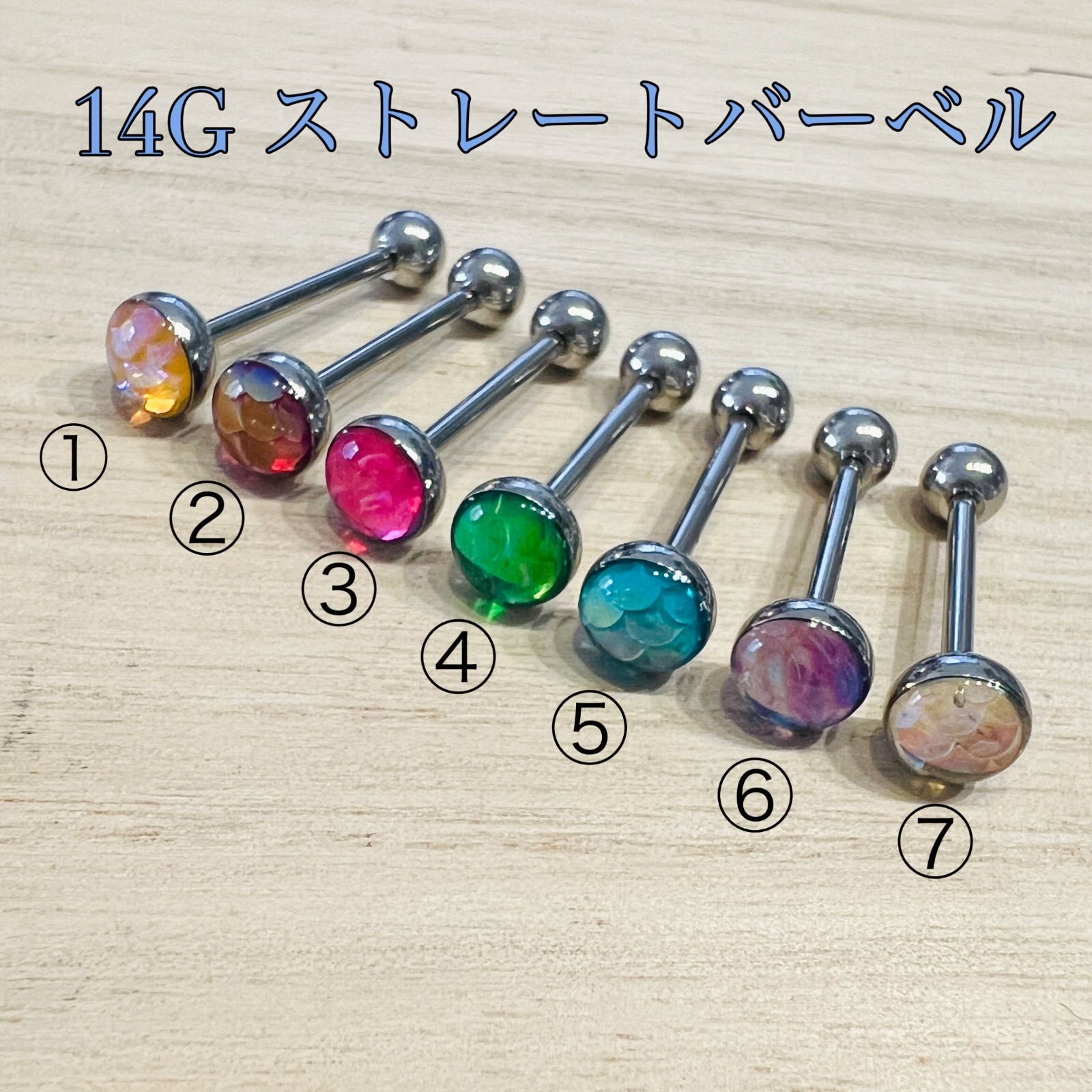 14G 16mm 1本 うろこ模様 ストレートバーベル 舌ピアス ボディピアス