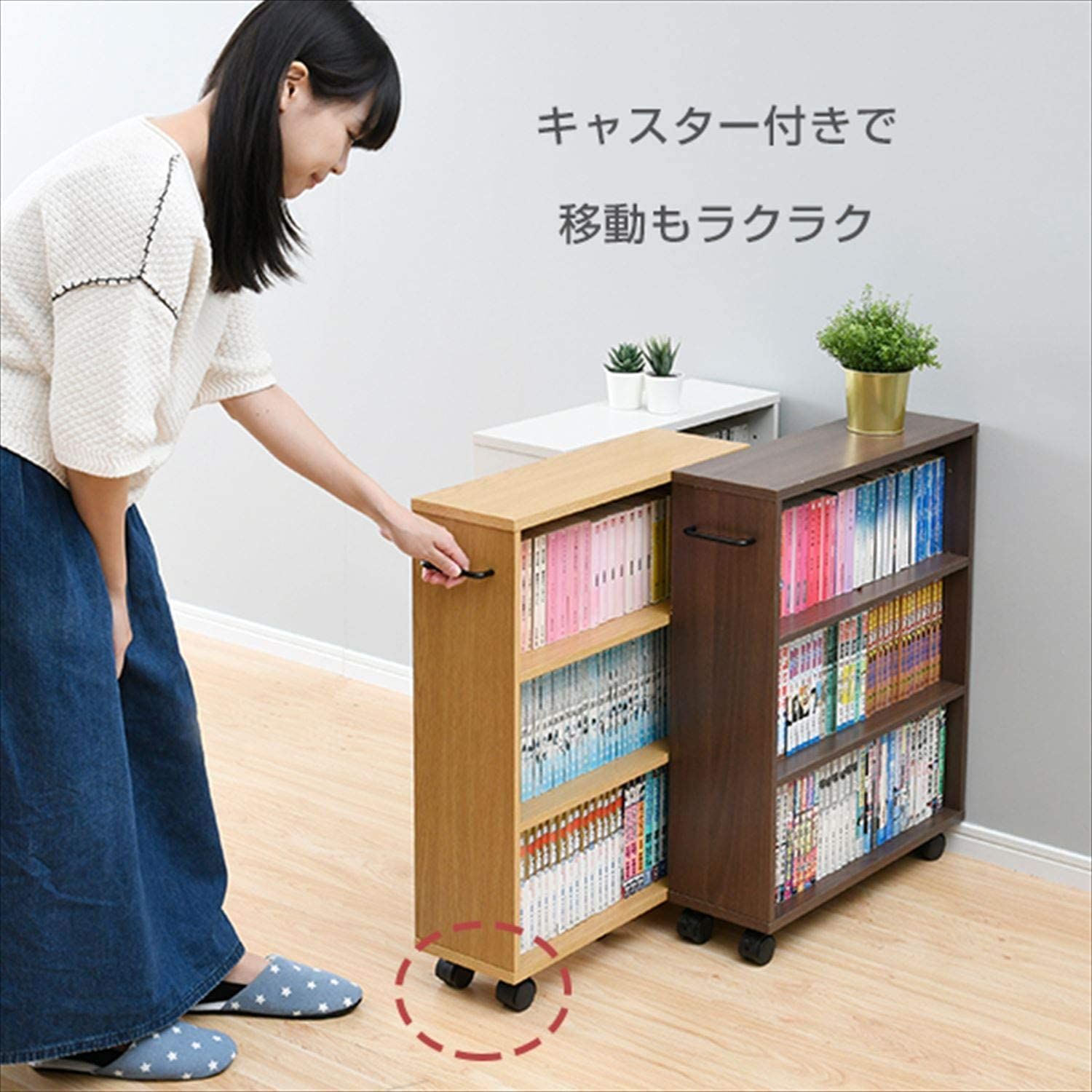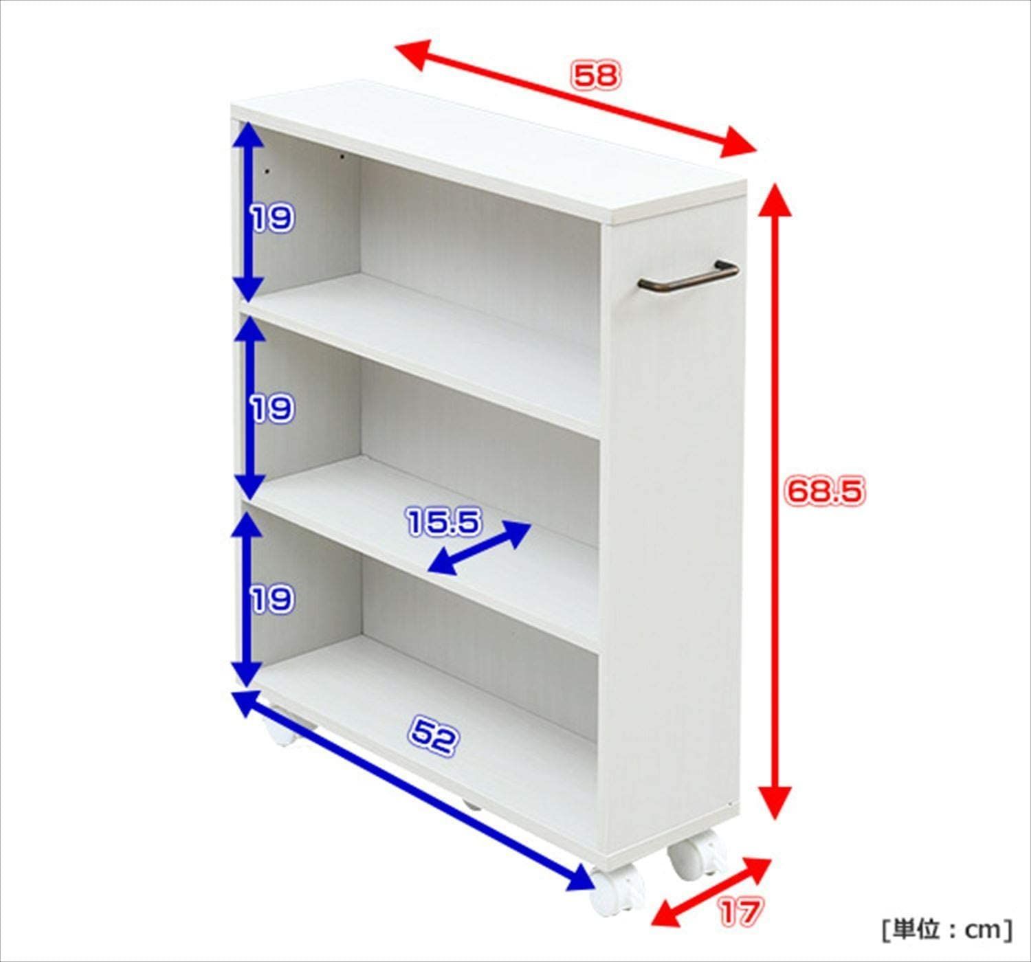 【人気商品】山善(YAMAZEN) 本棚 スリム (キャスター付き 本棚) 幅58×奥行17×高さ68.5cm 取っ手左右付け替えOK コミック (まんが) 収納目安105冊 組立品 ジョイホワイト CCW-7055CR(JW)