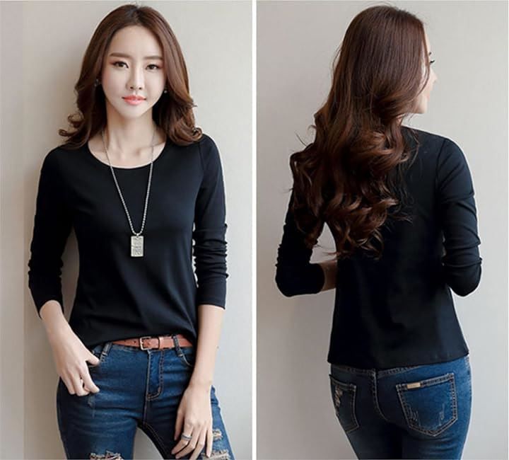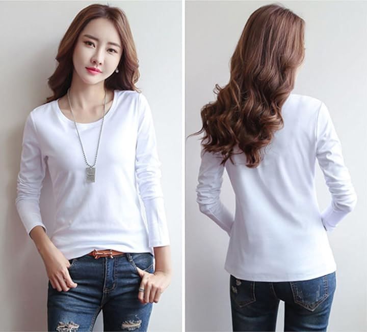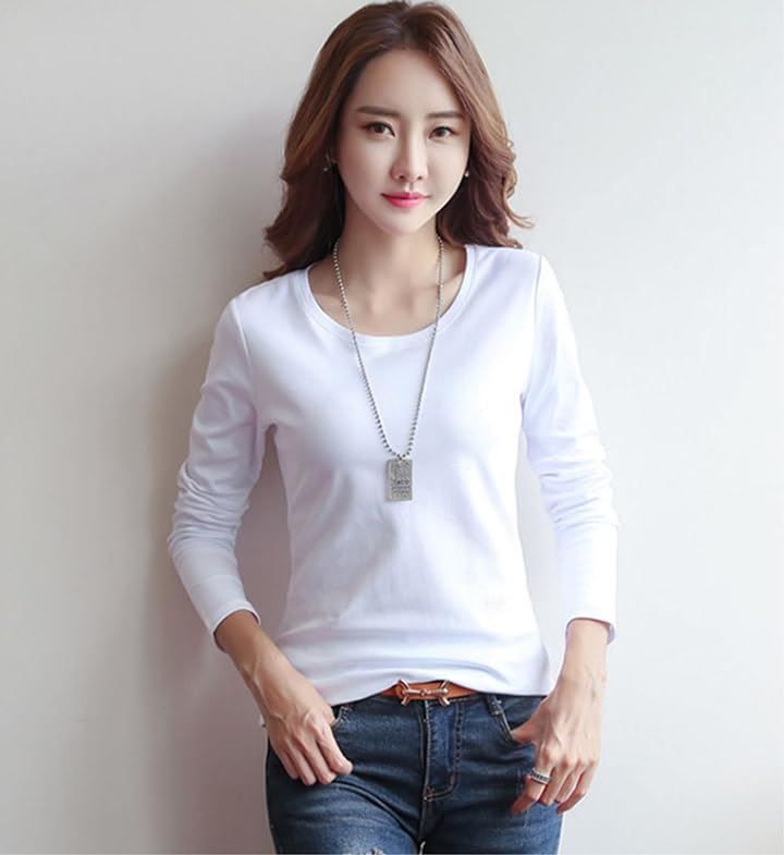 Nestkanina カットソー 長袖 クルーネック おしゃれ ニット きれいめ インナー 無地 丸首 トップス Tシャツ ロンT ストレッチ スリム タイト 上品 着やせ レディース TSHT045( ホワイト, L)