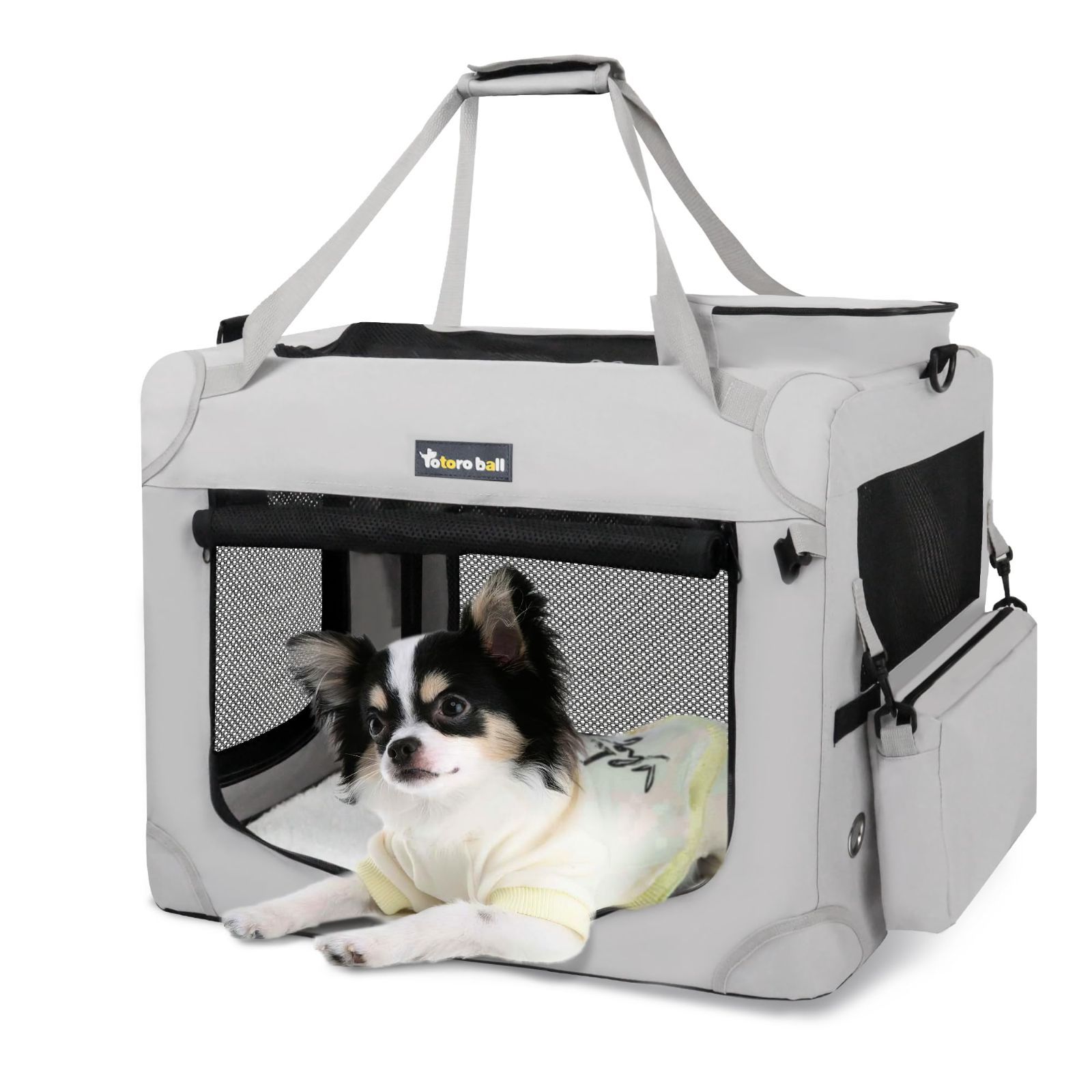 犬 折りたたみ 車用ケージ キャリーケース 5面メッシュ ロック付き キャリーバッグ 給水ボトルバンド付き 猫 小型犬・猫2匹7kgまで『車載、旅行、避難、アウトドア、帰省で活用!』 キャリー (ライトグレー S(50L ソフトクレート小型犬 x 犬用キャリー