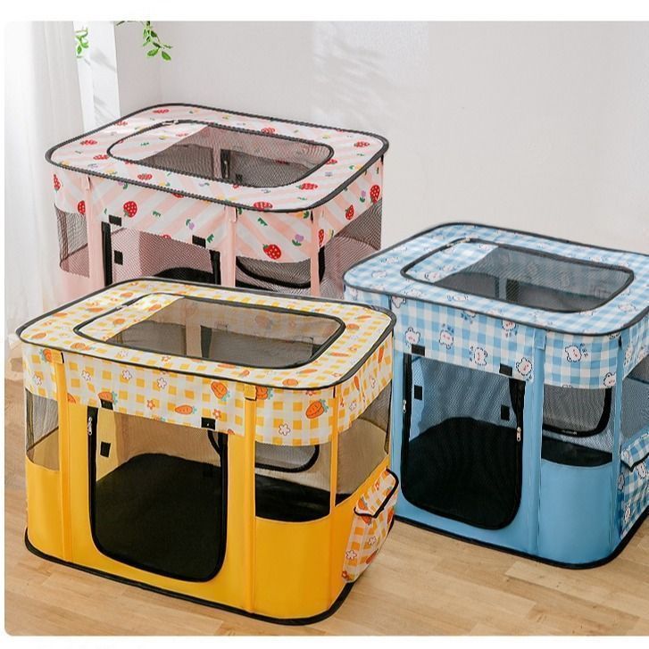 猫用品 ケージ 折り畳み 黄色 イエロー カラーバリエーション かわいい 軽量 簡易移動 Mサイズ 蚊対策 メッシュ 通気性 ペットサークル 小動物 子犬 ペットハウス 小型犬
