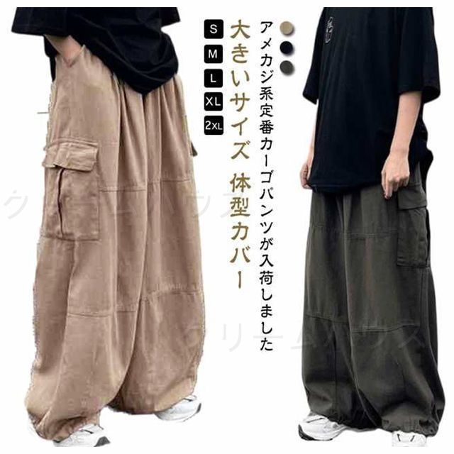 カーゴパンツ メンズ ミリタリーパンツ ワイドパンツ ワークパンツ 大きいサイズ ゆったり 体型カバー カジュアルパンツ ポケット 袴パンツ