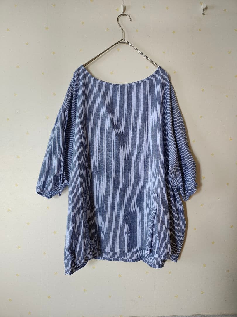 オーガニックコットン❋綿麻ストライプ 五分袖リネンチュニック
