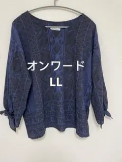 オンワード ネイビー パターン入り ブラウス(LLB)