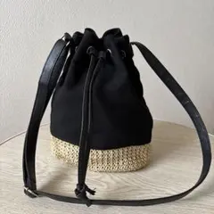 ファッショナブル ドローストリング ショルダーバッグ クロスボディバッグ ブラック レザー レディース241883