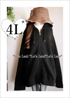 4L*ポケット&zipカジュアルパーカー*黒♪大きいサイズ*レディース