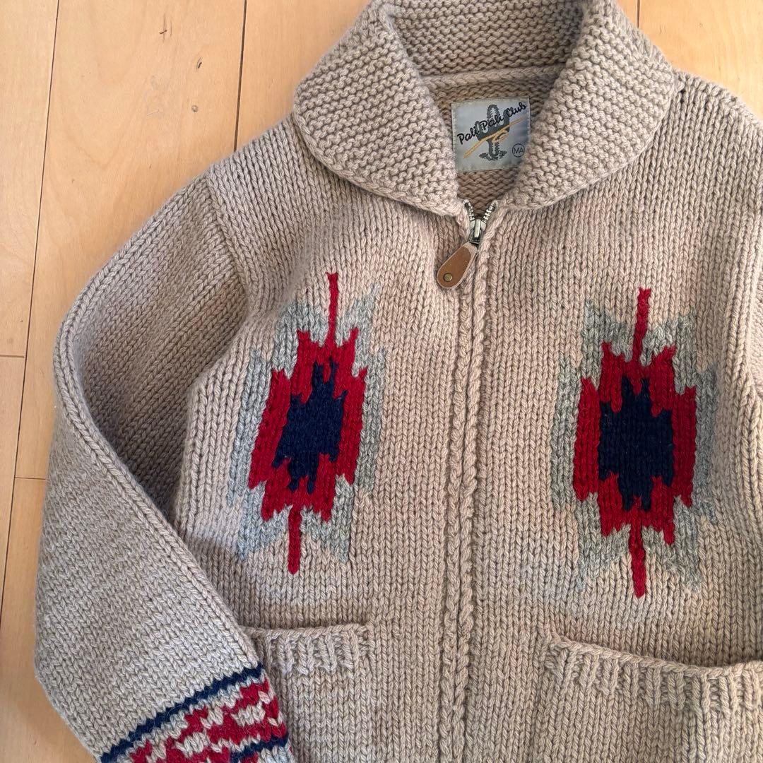 ビンテージ ジップアップ カウチンニット ネイティブ柄 キャメル セーター