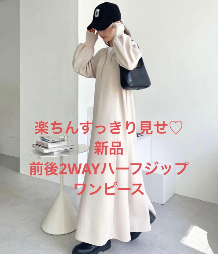 新品✨GeeRA 前後2WAYハーフジップ ワンピース アイボリー S