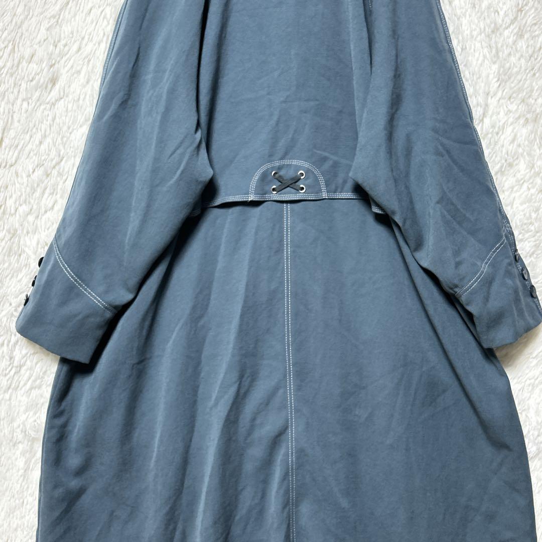 インバリッド ロングコート トレンチ F 青緑色 ステッチ